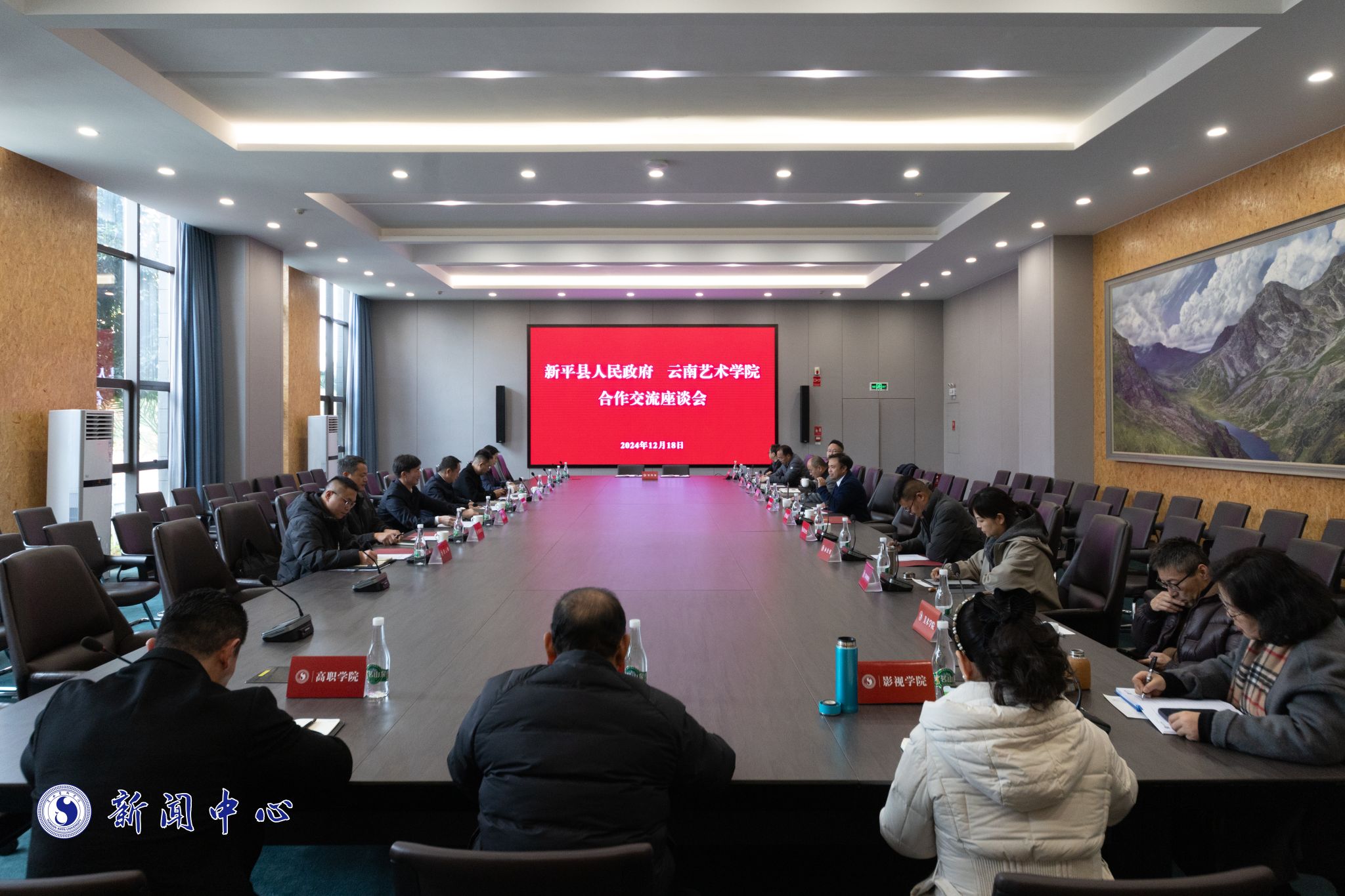 施文县长对新平县发展情况、民族特色、自然资源、文化旅游等方面进行了详细介绍。他表示,地方政府与高校的深度合作,是推动区域经济社会高质量发展的重要助推力。希望双方能够建立健全长效合作机制,在文旅产业规划、文化创意产品研发、艺术人才培养、文艺作品创作等方面开展全方位、多层次的深度合作,为新平文旅产业发展注入强大的智慧动力和创新活力,共同开创校地合作的美好未来。