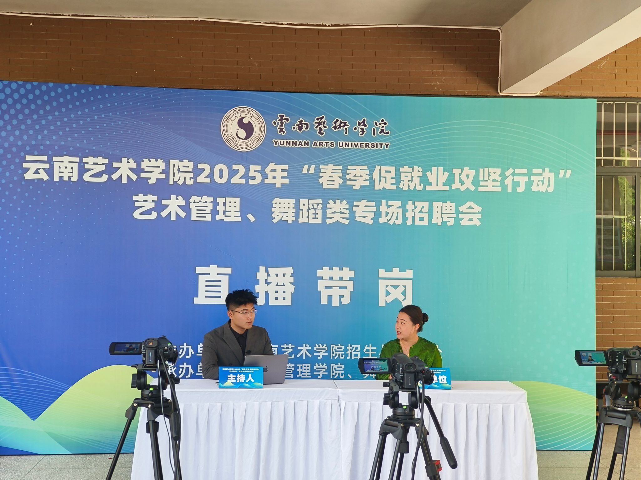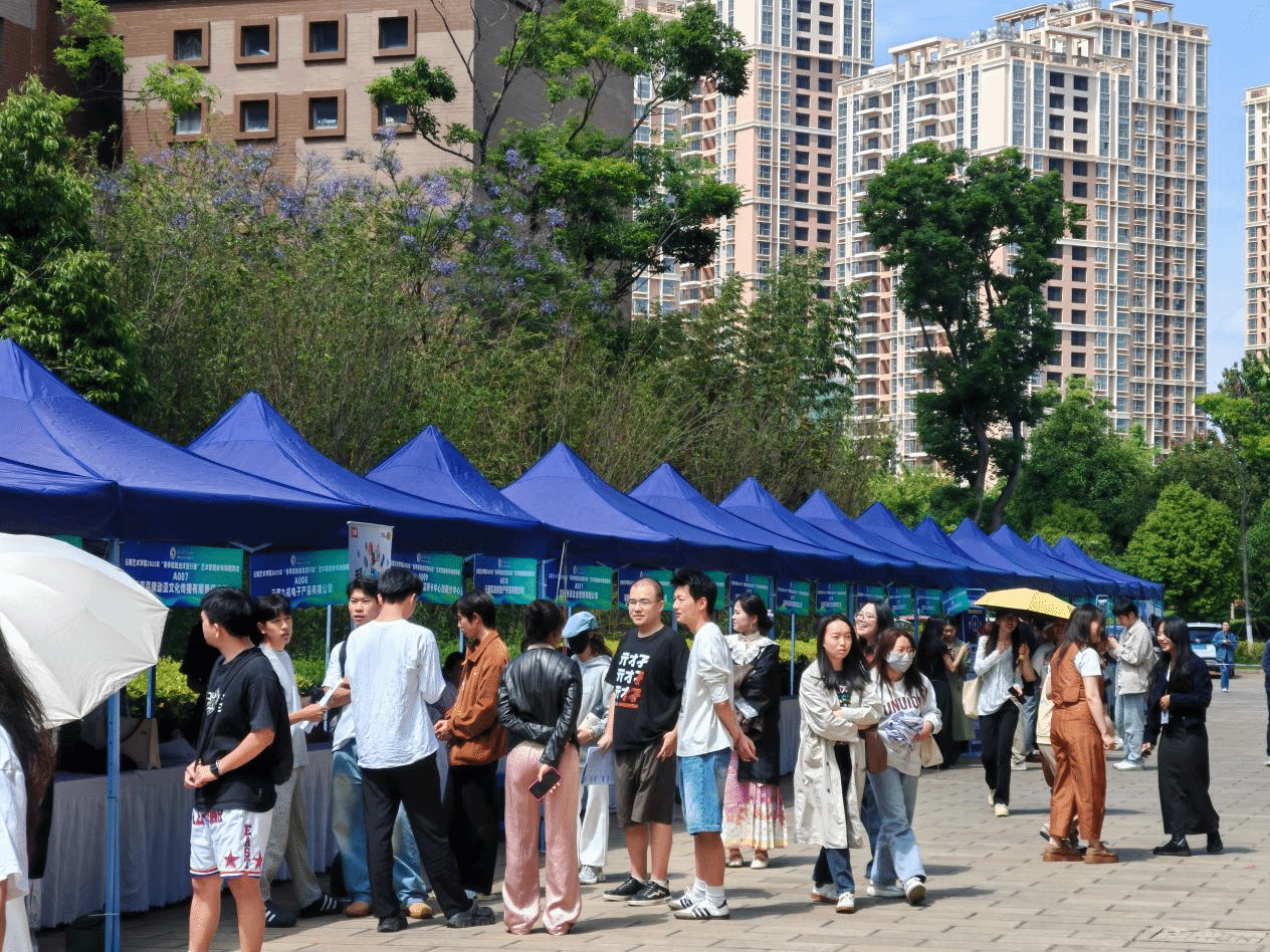 招聘会采用 “线上 + 线下”双轨模式,线下设置企业展位、直播带岗专区及就业咨询服务台,利用电子简历二维码实现高效对接;线上依托“云艺云就业”平台同步开展双选会,确保所有毕业生都能参与其中。值得一提的是,校友在本次招聘会中发挥了重要作用,从推荐用人单位到提供岗位,全方位助力学弟学妹就业。
