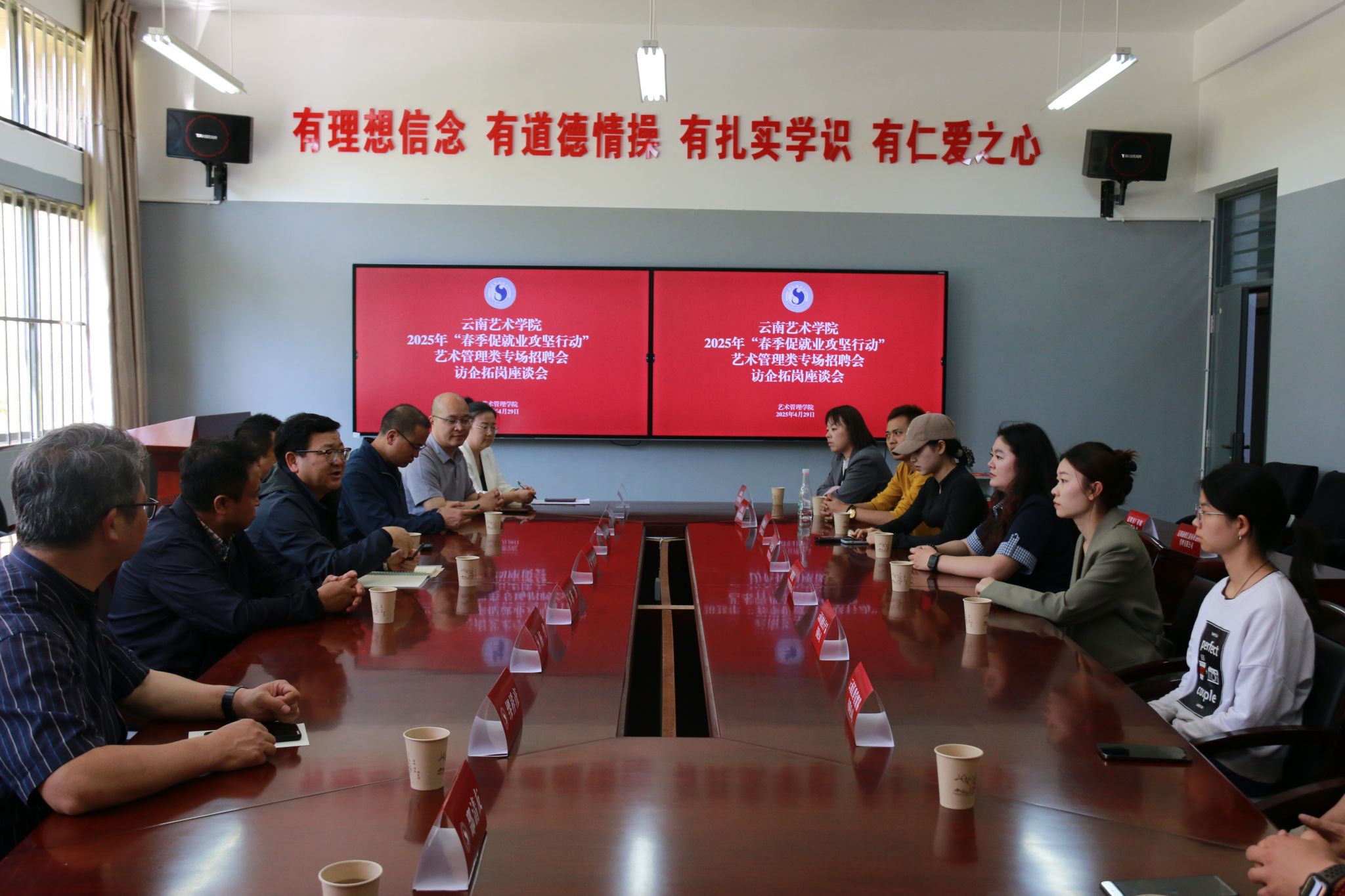 招聘会期间舞蹈学院和艺管学院各自开展了访企拓岗促就业座谈会,共邀请了19家企业进行座谈,就人才培养、岗位要求、实习实践、岗位拓展等方面进行了深度交流,为优化人才培养模式提供了宝贵思路,进一步深化了校企合作。