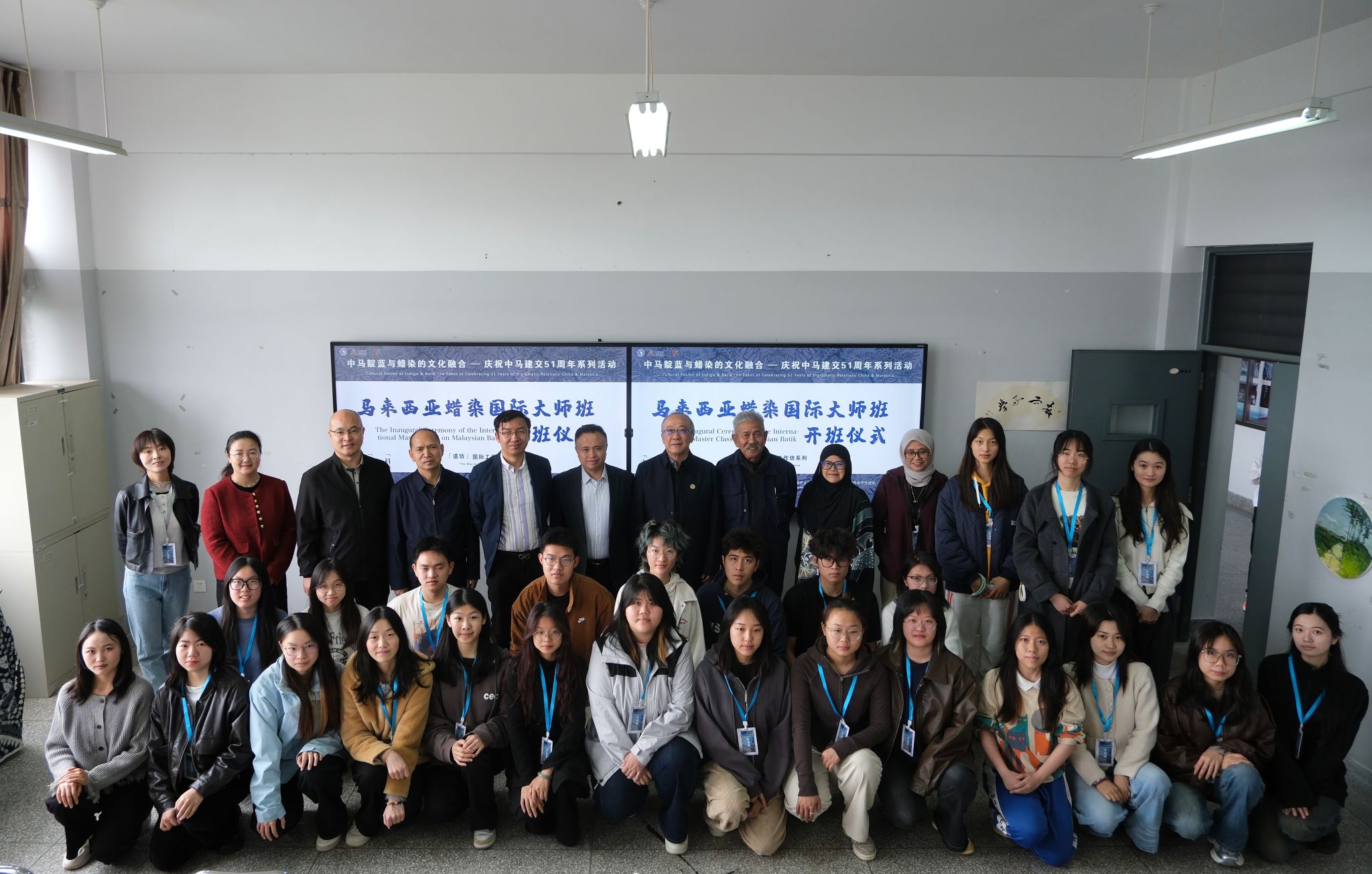 2025年5月26日,由beat365在线唯一官网登录艺术管理学院与beat365在线唯一官网登录对外合作交流处联合承办的马来西亚蜡染国际大师工作坊在艺术管理学院504教室正式开班。