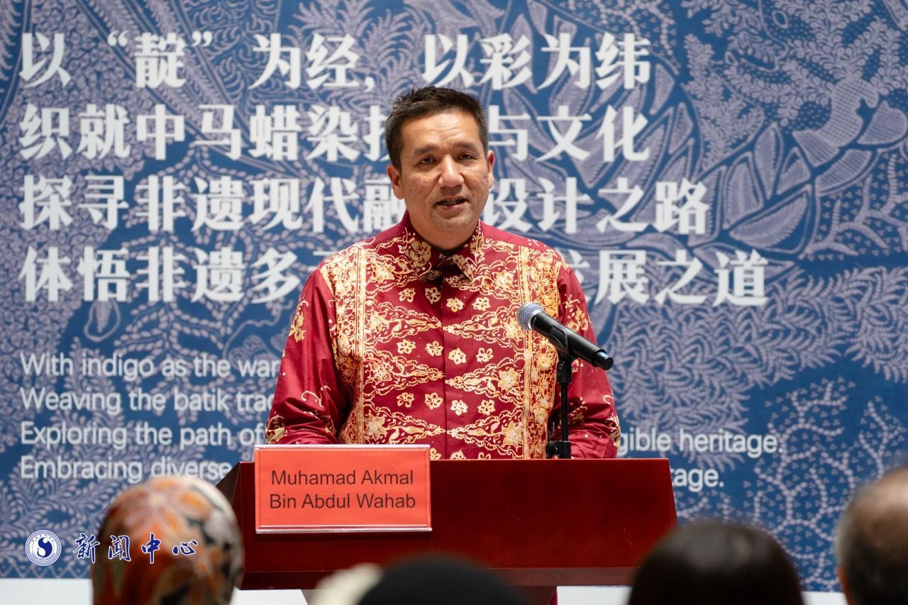 默罕默德·阿克玛·宾·阿卜杜·瓦哈布致辞。他指出,中马师生携手创作的蜡染作品,以深邃靛蓝为墨,以匠心技艺为笔,在布料上勾勒出新时代海上丝绸之路的崭新图景,这些作品是两国情谊代代相传的生动见证。希望以此次工作坊为桥梁,进一步推动更多文化交流和文明互鉴。