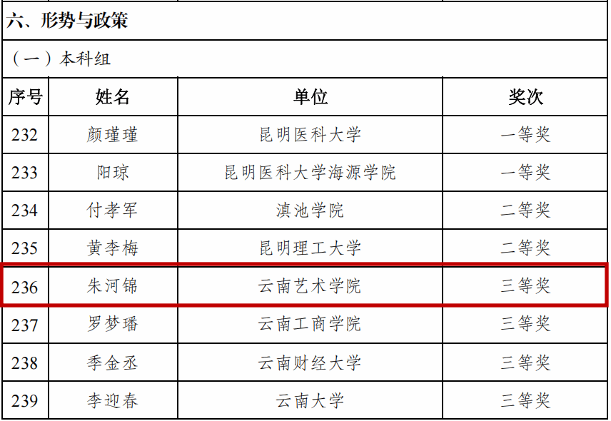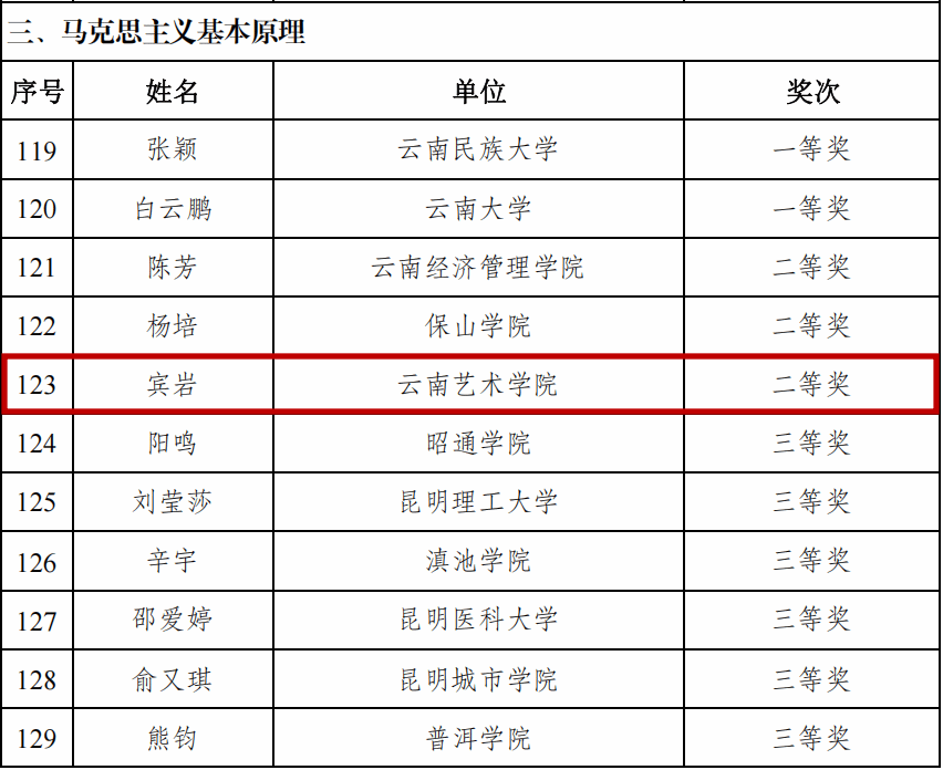 经过激烈的角逐后,牛宇老师获《习近平新时代中国特色社会主义思想概论》课程本科组二等奖;宾岩老师获《马克思主义基本原理》课程组二等奖;朱河锦老师获《形势与政策》课程组三等奖。
