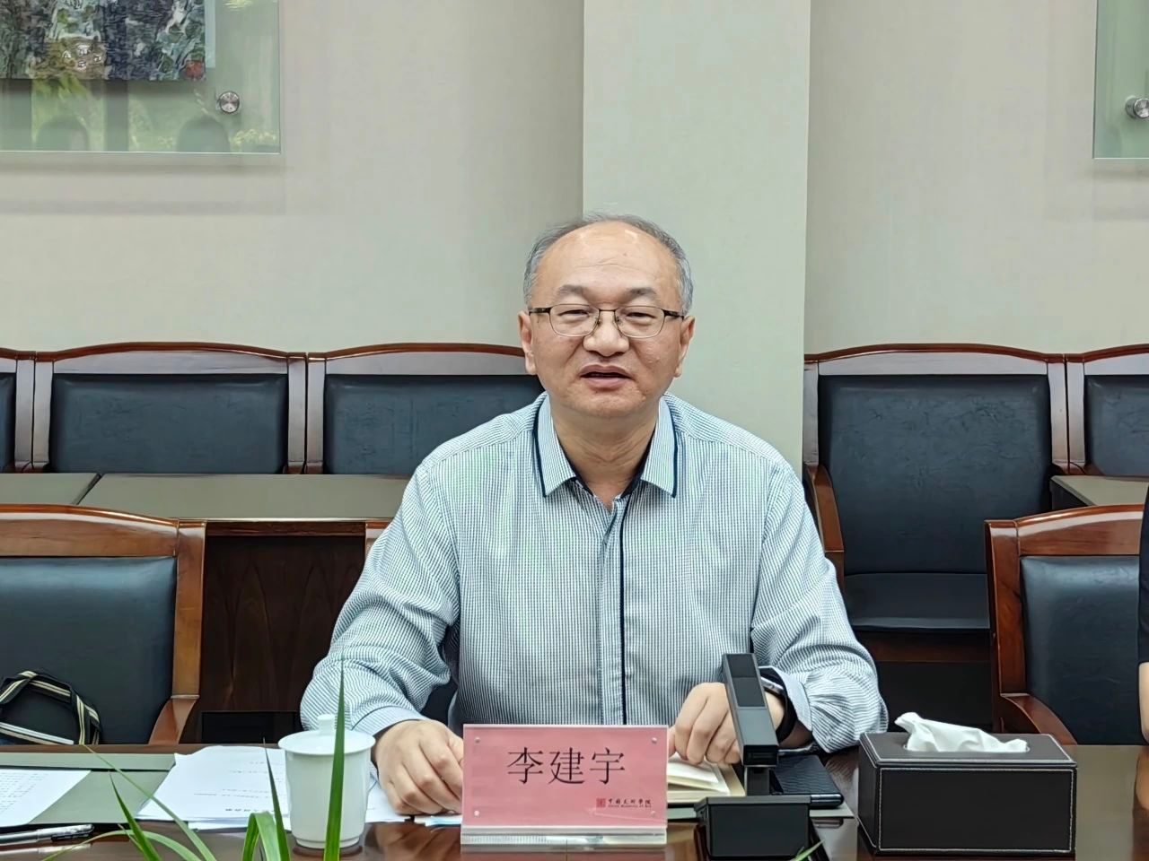 在中国美术学院交流座谈会上,双方介绍了各自学校的基本情况、发展历程和办学特色。李建宇表示,中国美术学院历史底蕴深厚、学科特色鲜明、科研成果斐然,作为研究型艺术大学始终站在时代的前沿。申报博士点是高质量发展的核心和办学层次的关键,我们要学习中国美术学院在学科特色凝练、师资队伍打造、科研平台建设、材料申报优化等方面的先进做法。同时,希望双方建立长效合作机制,把中国美术学院的成功经验转化为云艺行动,进一步深化两校在学科建设、科学研究、人才培养等领域合作,特别是加强在美术学科上的联合攻关,实现资源共享,优势互补。