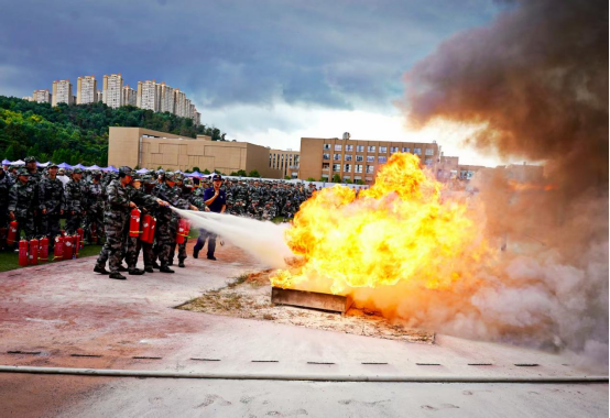 活动的最后环节是灭火实操演练,教员们首先详细讲解了干粉灭火器的正确使用方法和注意事项,强调了“提、拔、握、压”的动作要领;在确保安全的前提下,同学们分批上前,亲手操作灭火器扑灭明火。通过亲身实践,大家成功克服了面对火情的恐惧心理,初步掌握了扑救初起火灾的能力。