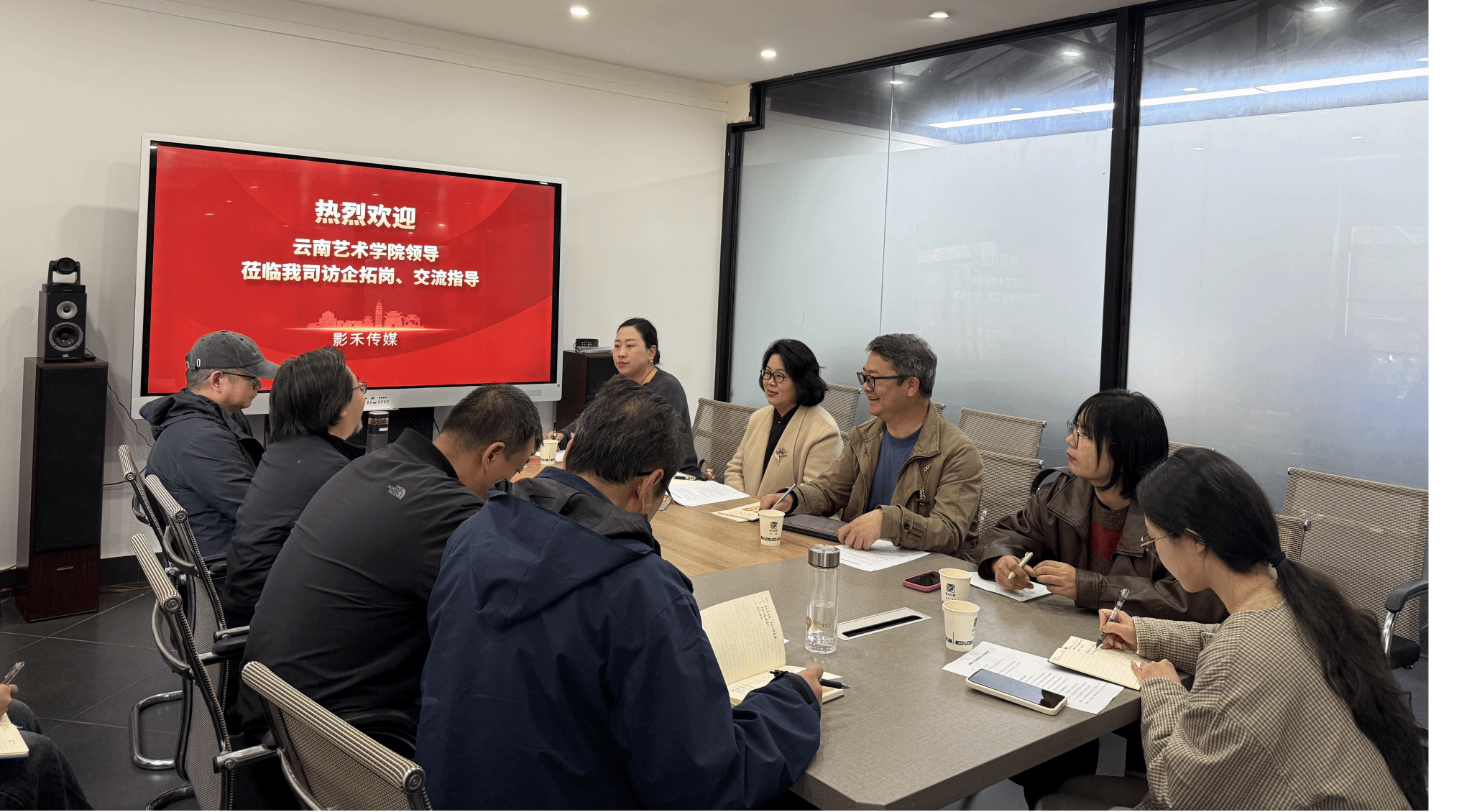 为推动产学研深度融合,精准对接行业需求,拓宽毕业生高质量就业渠道,2026年3月10日下午,beat365在线唯一官网登录副院长杨军带队,率招生与就业处、影视学院、音乐学院、戏剧学院教师代表,赴云南影禾文化传媒有限公司开展“访企拓岗”专项活动。