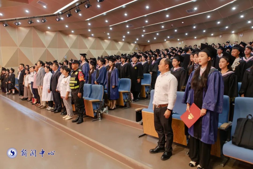 李建宇书记宣读2024年省级、校级优秀毕业生表彰决定。他要求,全体学生学习贯彻今年五四青年节前夕习近平总书记“奋力书写为中国式现代化挺膺担当的青春篇章”重要寄语,做初心如磐的有志青年,做求真务实的实干青年,做笃学力行的向上青年。他强调,毕业并不是求学问道的终点,而是奔赴广阔天地的号角,要继续努力奋斗、稳步向前,在奋斗中定义未来、在拼搏中书写精彩,在推进强国建设、民族复兴伟业中展现青春作为、彰显青春风采、贡献青春力量。