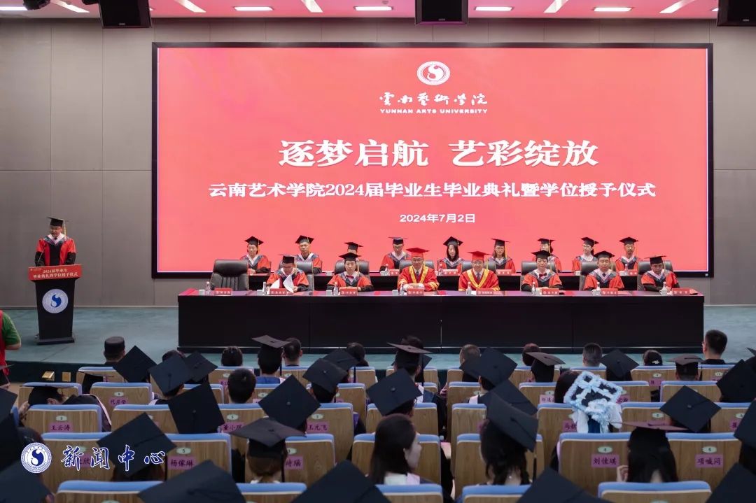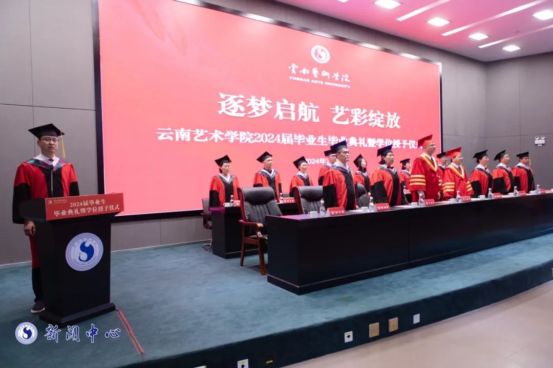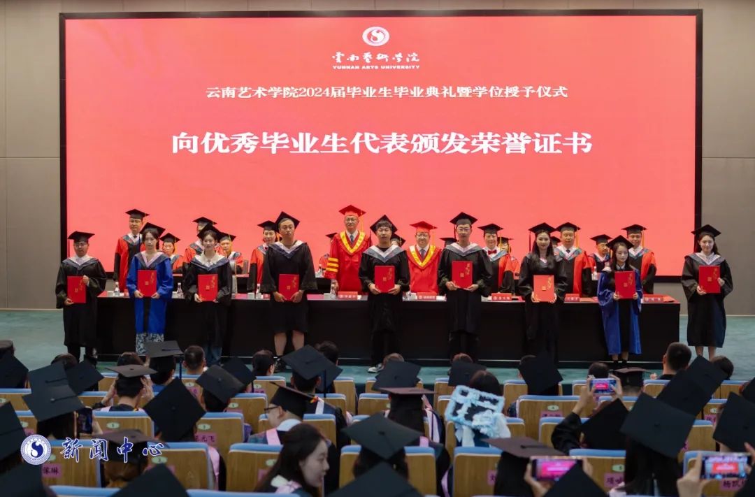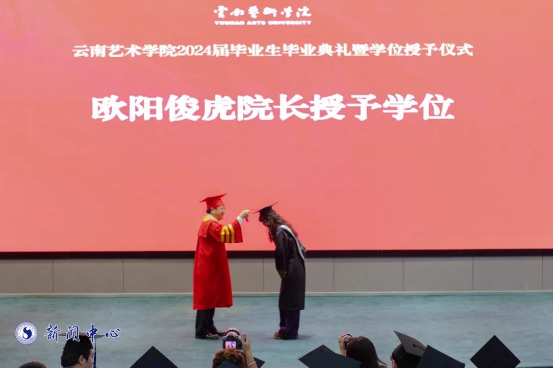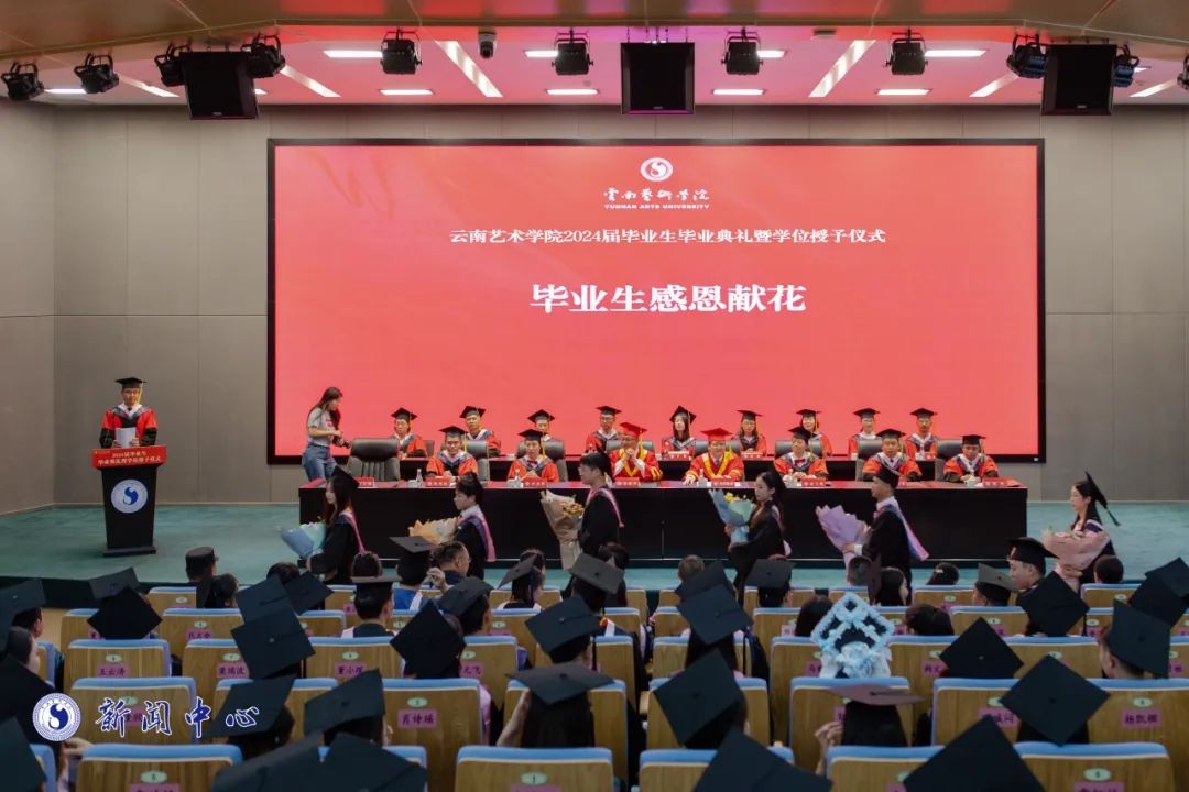 2024届校级大学生年度人物提名奖获得者舞蹈学院杨茜然代表硕士毕业生发言。他表示,作为云艺学子,将牢记母校的教诲,秉持求真务实的精神,不断追求卓越,勇攀高峰。以更加坚定的步伐,更加开阔的视野,去迎接新的挑战。心怀梦想、脚踏实地就一定能够实现自己的理想,成就更加辉煌的明天。
