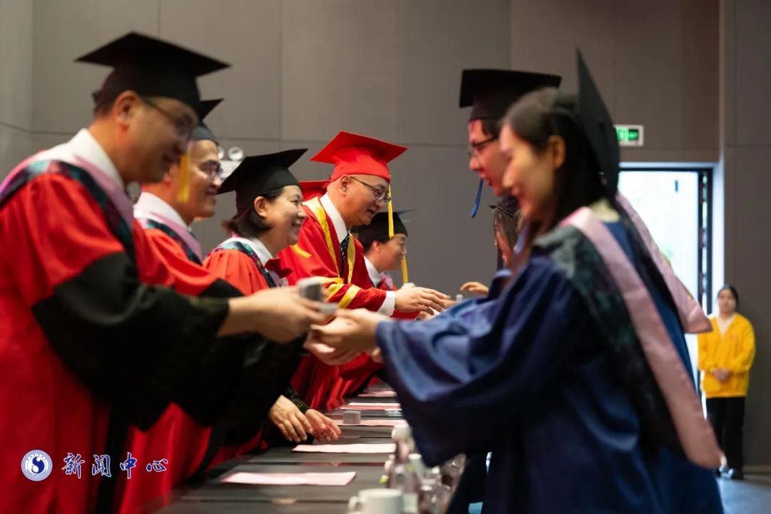 谢师仪式,全体毕业生代表向主席台主礼教授进行致谢鞠躬,主礼教授向毕业生回礼。
