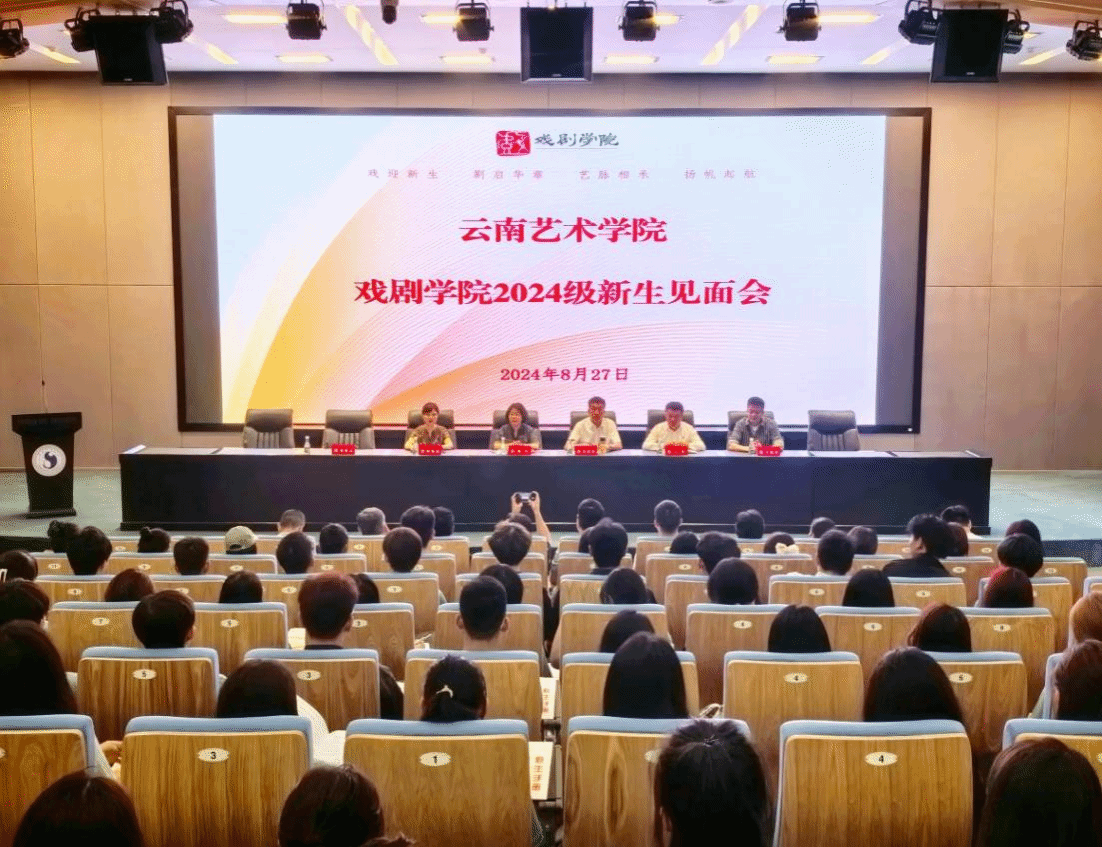 8月27日下午2点,在图书馆报告厅举行了2024级新生见面会开学第一课,戏剧学院党委书记刘恩权、院长杨军、党委副书记王建、副院长杨俊霞、各系部主任、科室负责人、班主任等参加了会议。会议由杨俊霞副院长主持。会上,杨军院长给新生提出了期望,希望同学们通过四年的学习,能成为一个健康、乐观、向上,有职业认同感的戏剧人。会议最后,刘恩权书记作总结讲话,用真诚的话语、真挚的情感、饱满的热情介绍了戏剧学院的历史与学院的发展,鼓励同学们要在这里发光发热,努力学习,为云艺争光,为戏剧添彩,为自己加油!
