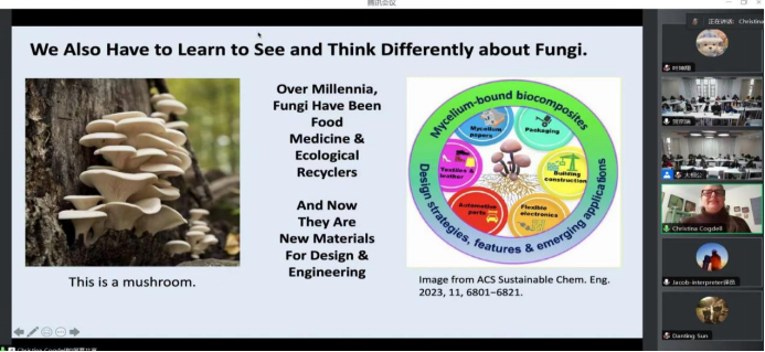 2024年11月4日-26日,加州大学戴维斯分校设计系CHRISTINA COGDELL(克里斯蒂娜 科格戴尔)教授受我校邀请到学校讲学。在为期近一个月的教学中,克里斯蒂娜·科格戴尔教授将聚焦环境设计领域前沿科技,以跨学科的学术视野,向设计学院环境设计专业本科学生展示加州大学戴维斯分校设计系在“设计+自然科学”方面创新探索的最新成就。克里斯蒂娜·科格戴尔教授在“菌丝体在建筑、产品和纺织品中的应用”专题讲座中阐述了菌丝体作为新兴生物材料的科学原理,强调其在应对全球气候变化与推动可持续发展方面的重要作用并详细介绍了菌丝体在建筑、产品及纺织行业应用中的广泛潜力,其卓越的保温、阻燃、防水性能以及对环境影响的极低程度,使之成为替代传统材料的优选,揭示了跨领域应用的无限可能。