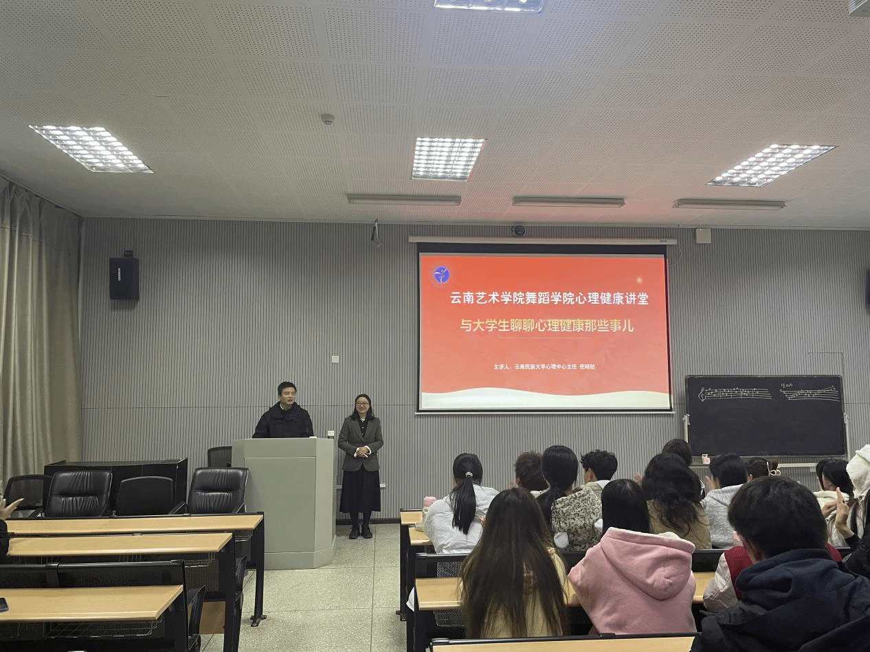 2024年11月26日,舞蹈学院开展心理健康讲堂(第一期),邀请了云南民族大学学生工作处大学生心理健康教育咨询中心主任、国家二级心理咨询师倪晓昉老师开展主题为“与大学生聊聊心理健康那些事儿”的心理健康讲座。学院140余名同学和辅导员参加讲座,学院党委副书记姜中林主持讲座。