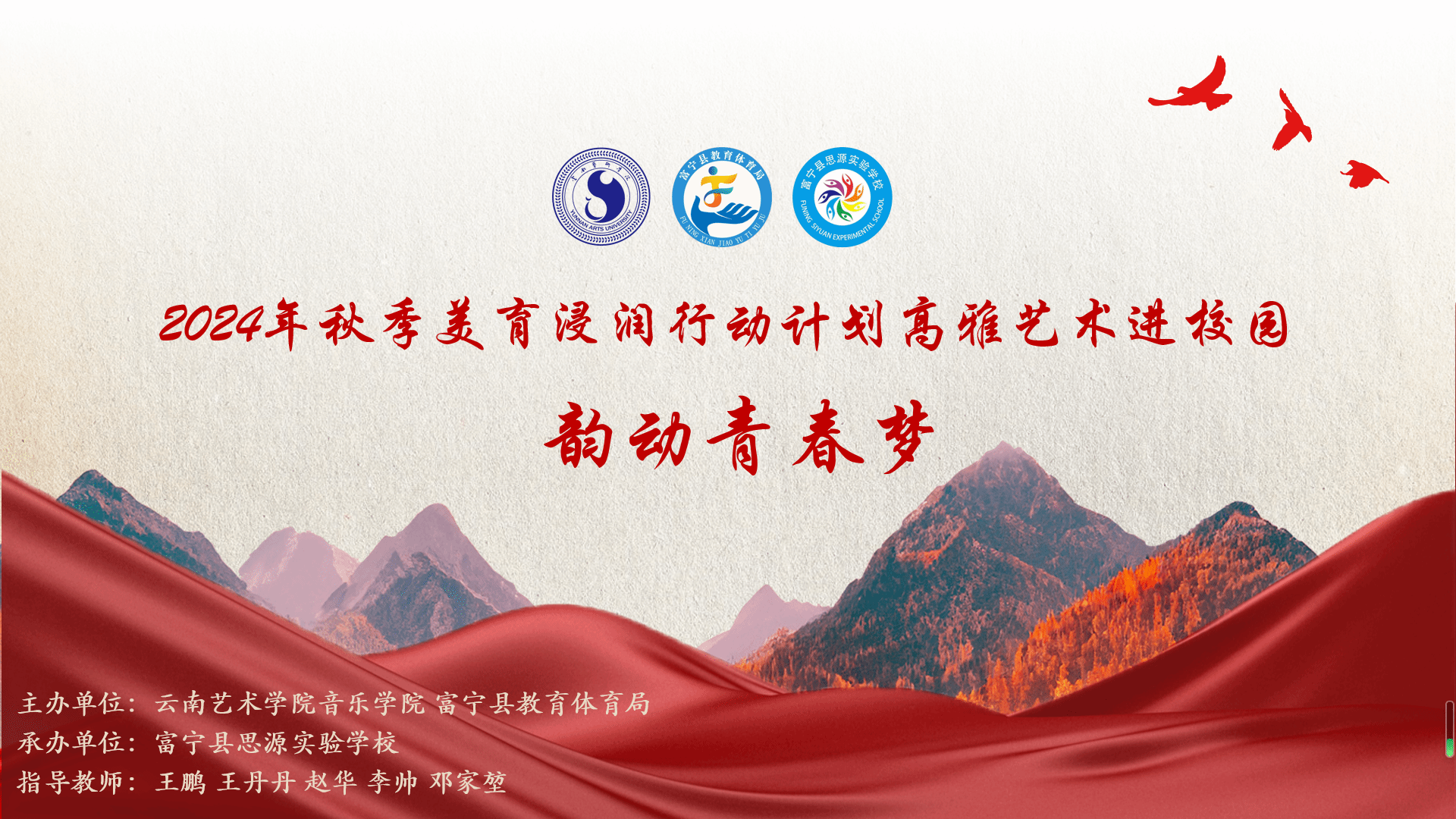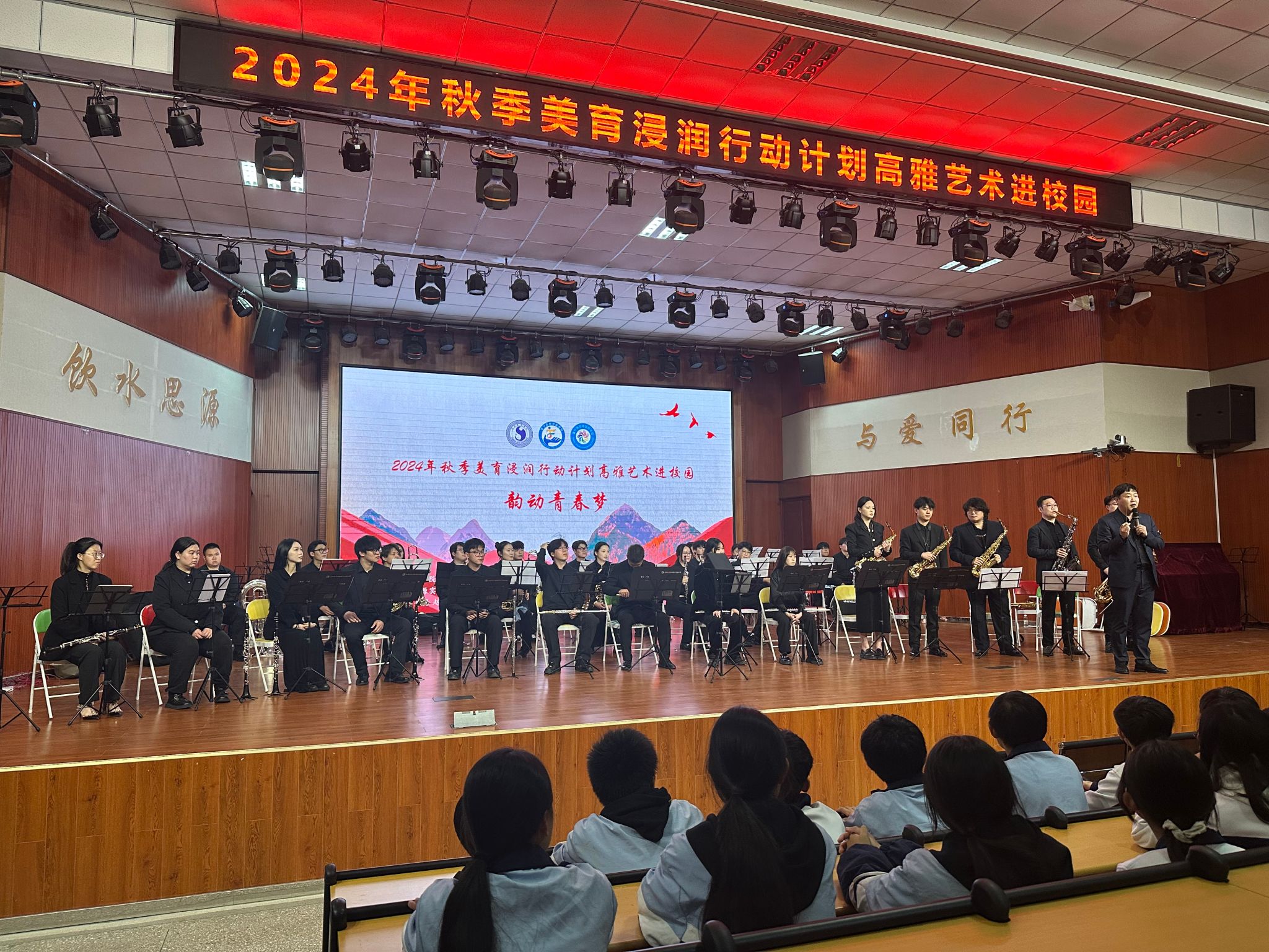 为认真贯彻落实好学校美育浸润行动计划,进一步丰富美育形式,促进美育质量提升,近日,beat365在线唯一官网登录音乐学院派出师生团队前往富宁县开展“2024年秋季美育浸润行动计划高雅艺术进校园”展演,此次展演由管弦系系主任王鹏副教授带队,管弦系教师王丹丹、赵华、李帅、邓家堃担任指导老师,30名学生组成的beat365在线唯一官网登录青年管乐团承担本次展演活动。展演活动由beat365在线唯一官网登录音乐学院、富宁县教育体育局主办、富宁县思源实验学校承办。