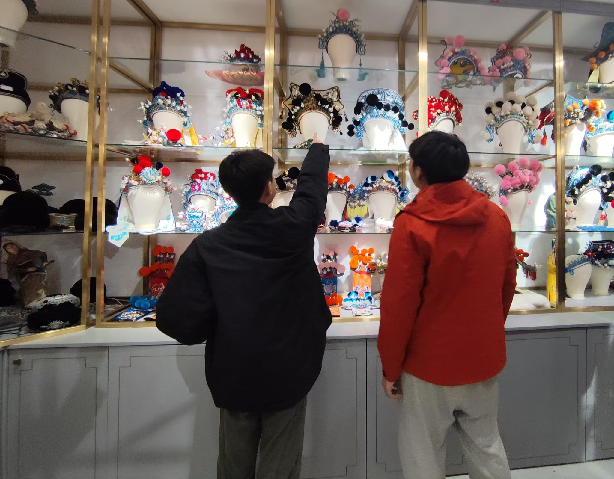 在滇剧院展厅,王润梅院长向同学们介绍了云南省滇剧院的历史沿革、前辈名家、演出传统、经典剧目以及创新发展等情况,并带领师生们参观了滇剧院的“盔帽道具展示间”。同学们面对戏曲行当里制作精美的盔帽和道具,顿时感觉眼花缭乱,听了王院长的讲解后,才明白什么样的盔头对应什么样的角色,大家无不赞叹戏曲艺术的博大精深。