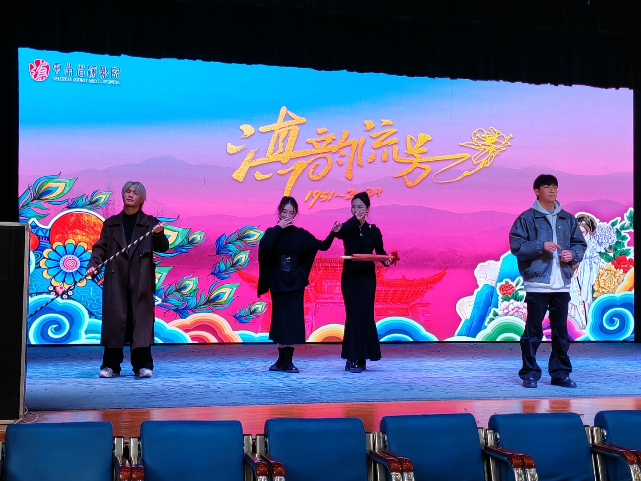 2024年12月4日,音乐学院民族声乐系系主任陈红玲和戏曲课程教师洪露带领民族声乐系2022级、2023级部分学生一行76人,前往云南省滇剧院开展民族声乐系秋季学期劳动实践周系列活动——对云南地方戏曲院团的观摩学习活动。
