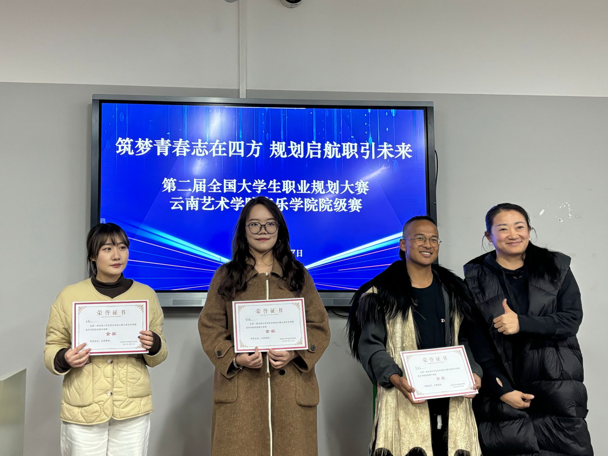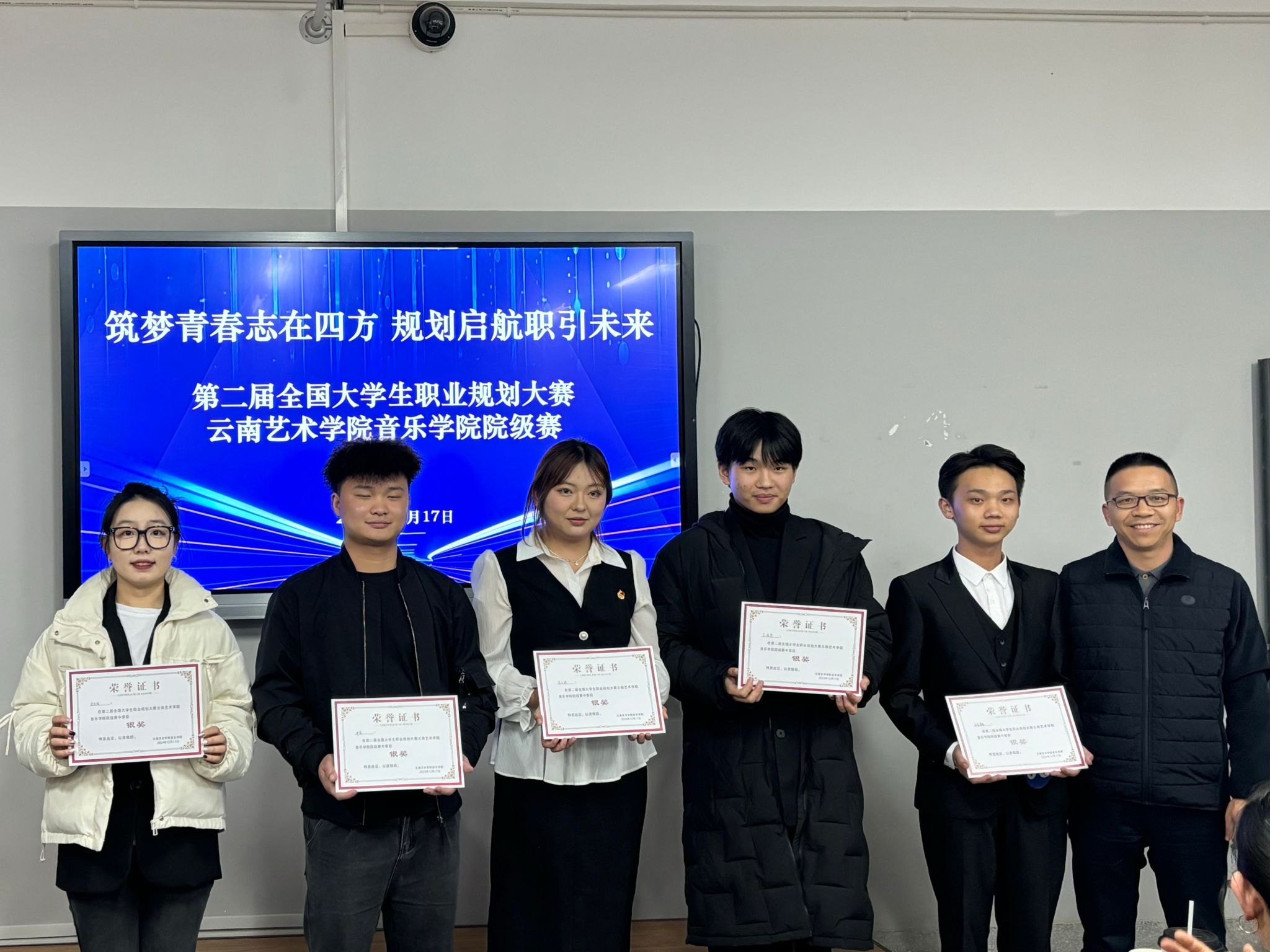 音乐学院报名参加本次比赛的选手共计320人,经过班级和年级推选,遴选出23人进入音乐学院院级赛,其中成长赛道11人,就业赛道(本科生组)7人,就业赛道(研究生组)5人。经过激烈角逐,茶学龙获成长赛道金奖,肖子怡、王浚宇、马礼翱获成长赛道银奖,万知之、杜盆霖、陈雪慧获成长赛道铜奖,旷子王、卢珊、赵升雄、赵天天获成长赛道优秀奖;曾弈鑫获就业赛道(本科生组)金奖,邓茗、冷悦获就业赛道(本科生组)银奖,刘友念、邹子涵获就业赛道(本科生组)铜奖,雷茂、张远获就业赛道(本科生组)优秀奖;梁馨元获就业赛道(研究生组)金奖,史佳煜获就业赛道(研究生组)银奖,张可佳获就业赛道(研究生组)铜奖,孟茜、何思稼获就业赛道(研究生组)优秀奖。