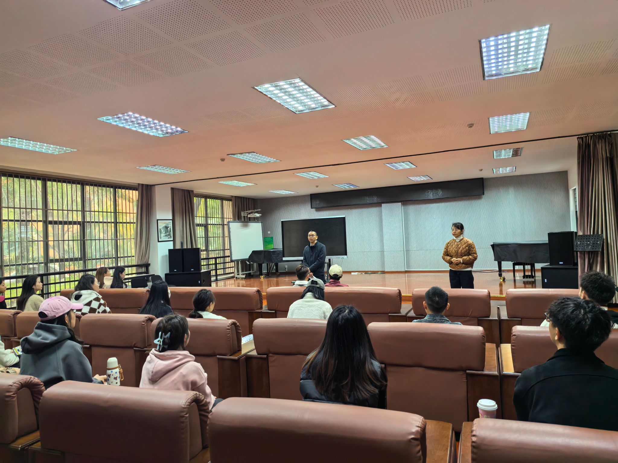 2025年2月25日上午,音乐学院在B101教室召开美育浸润行动第四批师生培训暨出征动员大会。音乐学院党委副书记、纪委书记肖本俊,音乐学院党委委员、副院长侯静宜,美育浸润带队教师及全体学生参会。