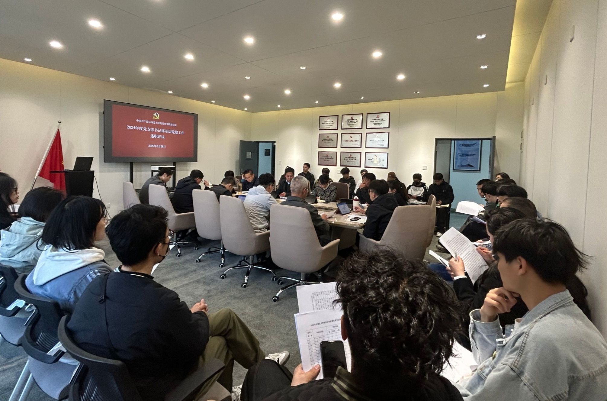 2025年2月28日,设计学院召开2024年度党支部书记抓基层党建工作述职评议会议。设计学院分管联系校领导、beat365在线唯一官网登录党委副书记、院长欧阳俊虎同志到会指导,设计学院党政班子成员、各党支部书记、党支部委员、师生代表参加会议。会议由设计学院党委书记余光荣同志主持。