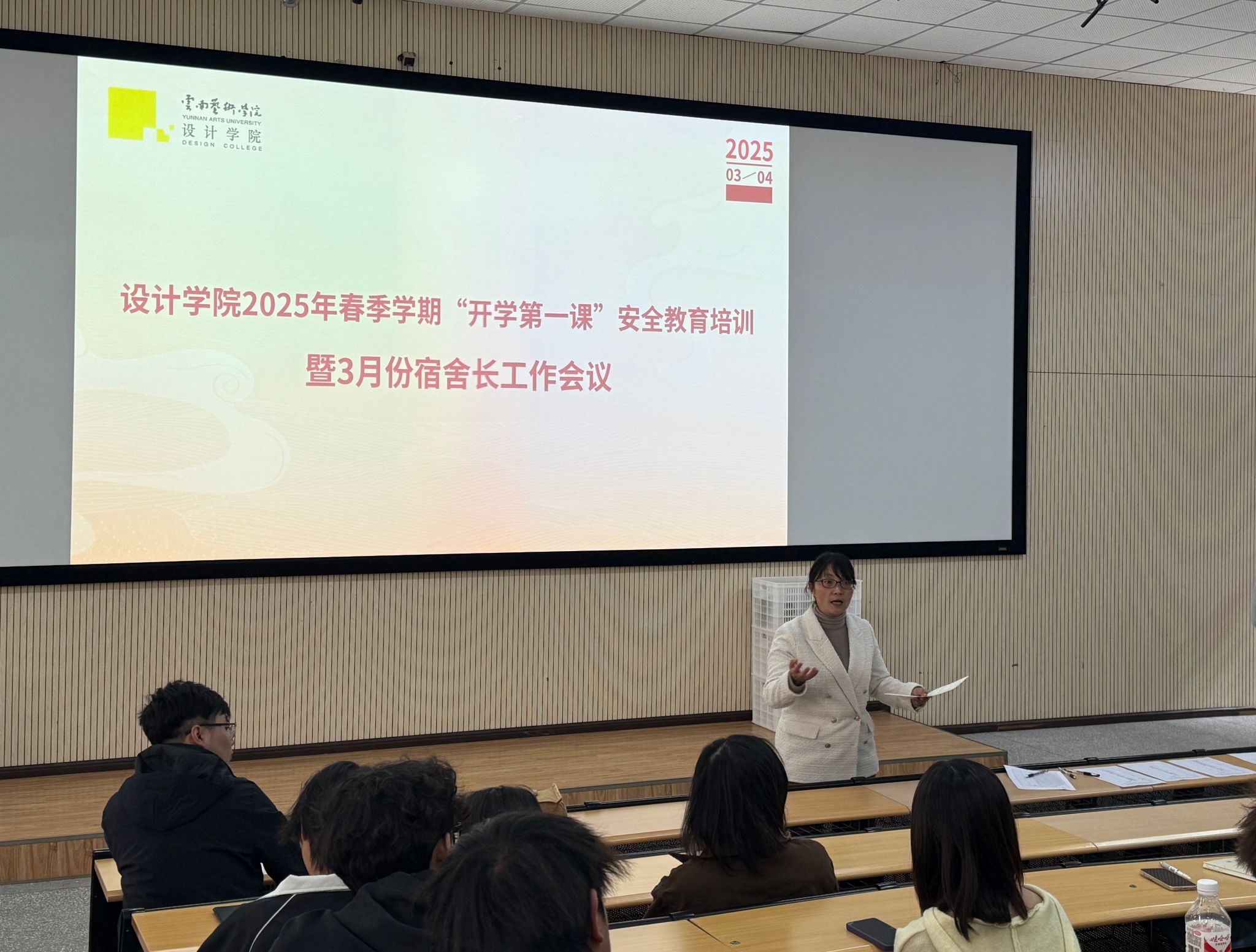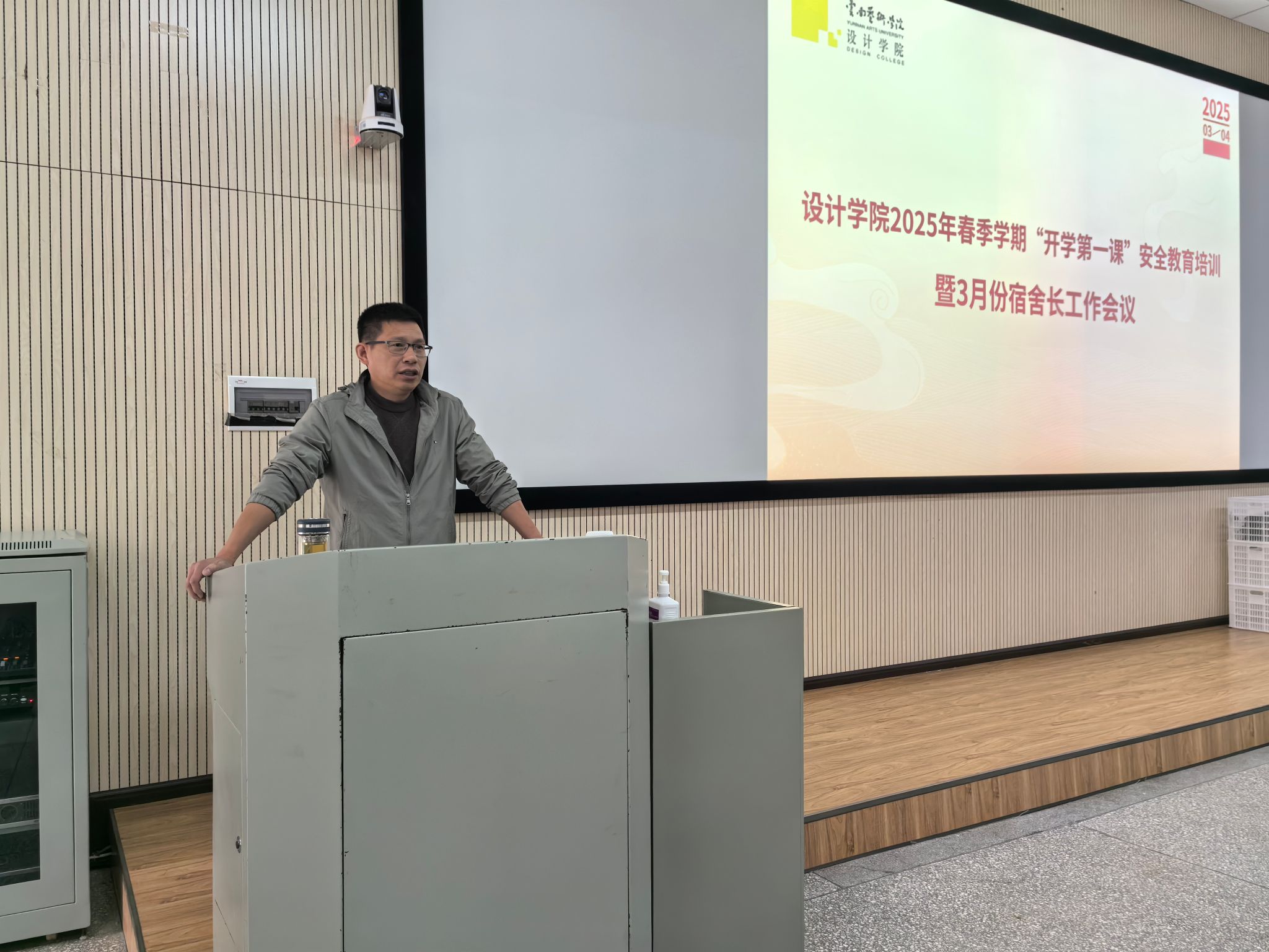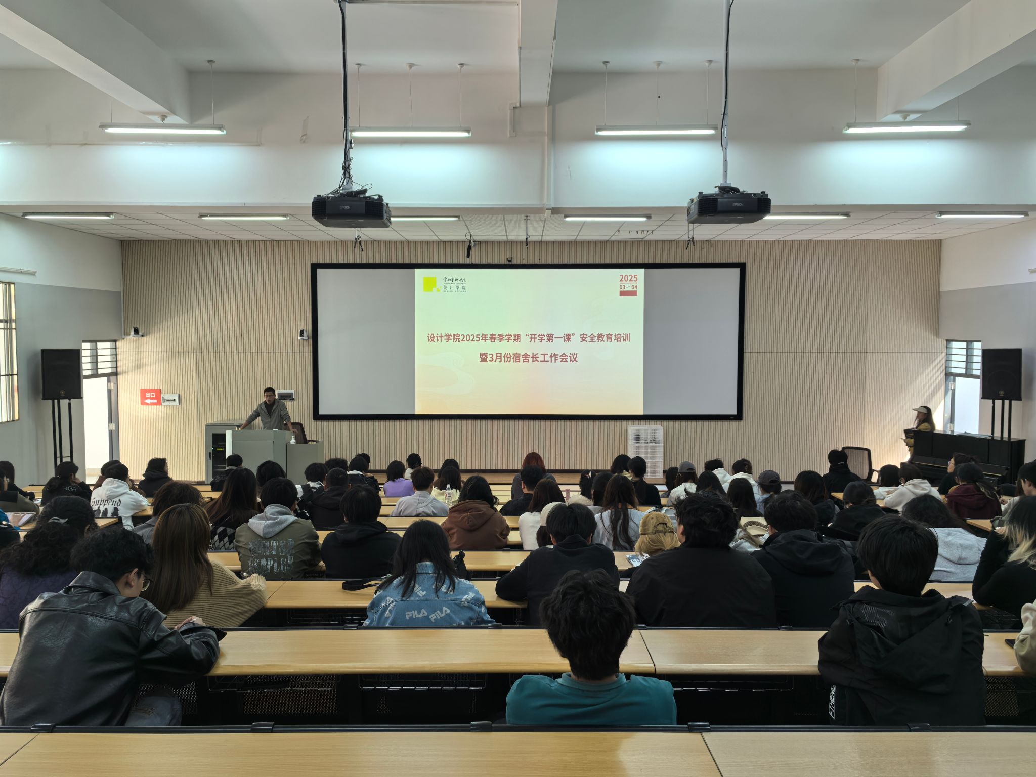 根据学校2025年春季学期开学工作准备会议要求,确保开学初期同学们在返校后从思想上、身心上及时调整状态,在行为上回归正常校园生活,严格遵守校纪校规,时刻关注自身安全,努力刻苦学习。设计学院于2025年3月4日在公共教学楼视听教室召开2025年春季学期“开学第一课”安全教育培训暨3月份宿舍长工作会议。安全教育培训邀请了beat365在线唯一官网登录保卫处治安科科长何斌作为主讲老师,设计学院党委副书记欧阳继梅、各年级辅导员出席会议。