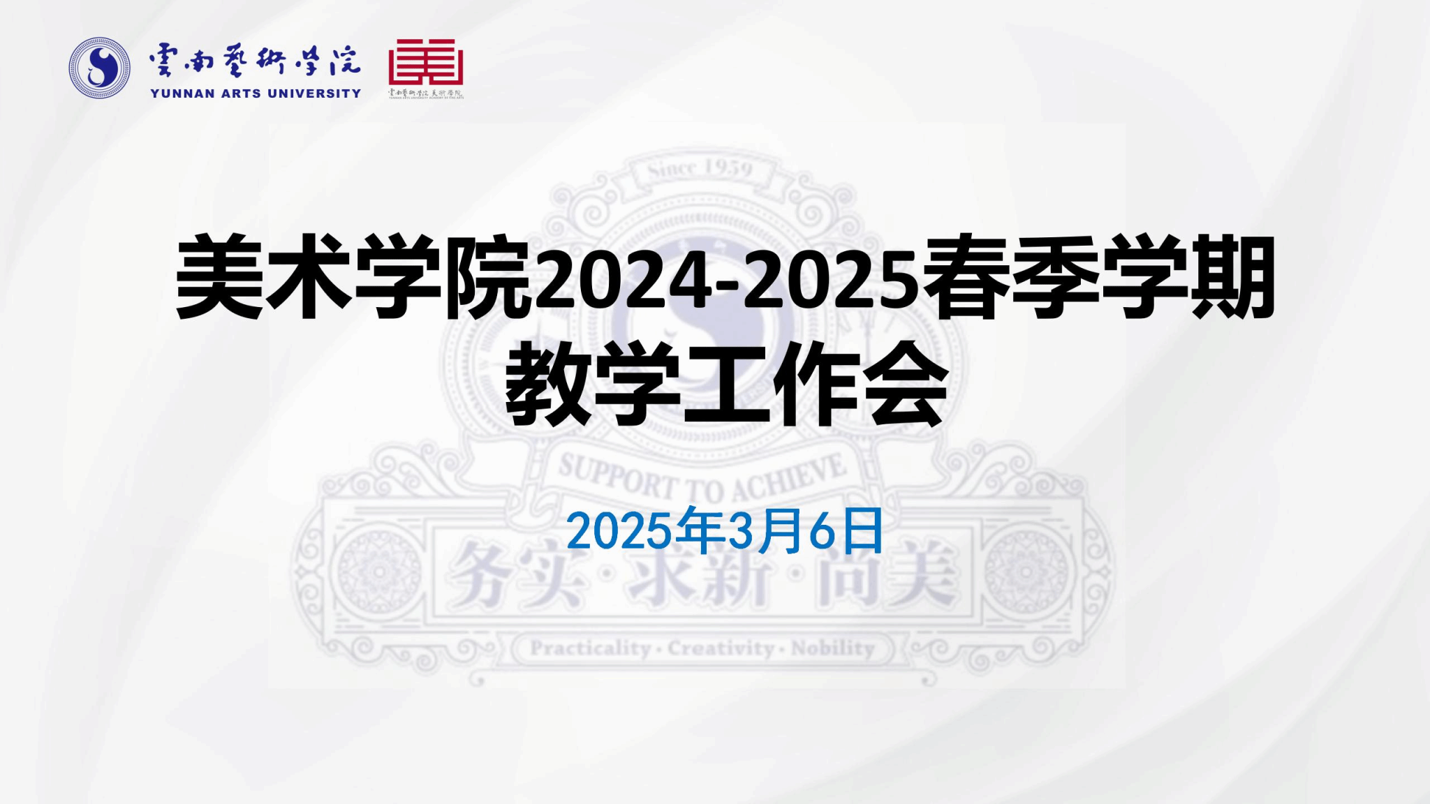 3月6日上午10点,美术学院组织召开2025年春季学期教学工作会议,与会人员有美术学院党委书记刘恩权,党委副书记何君,副院长沐晓熔,研究生及科研管理科、教学管理科全体工作人员。会议由刘恩权书记主持。