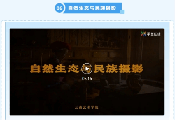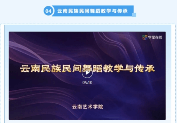 六门慕课分别是:《录音技术》(课程负责人:王智)《台词训练》(课程负责人:汪克敏)《音乐教育原理》(课程负责人:罗宇佳)《云南民族民间舞蹈教学与传承》(课程负责人:徐梅)《纪录片观念与历史》(课程负责人:王跃)《自然生态与民族摄影》(课程负责人:沐晓熔)。其中《音乐教育原理》经过国际化改造后同步上线学堂在线国际版。