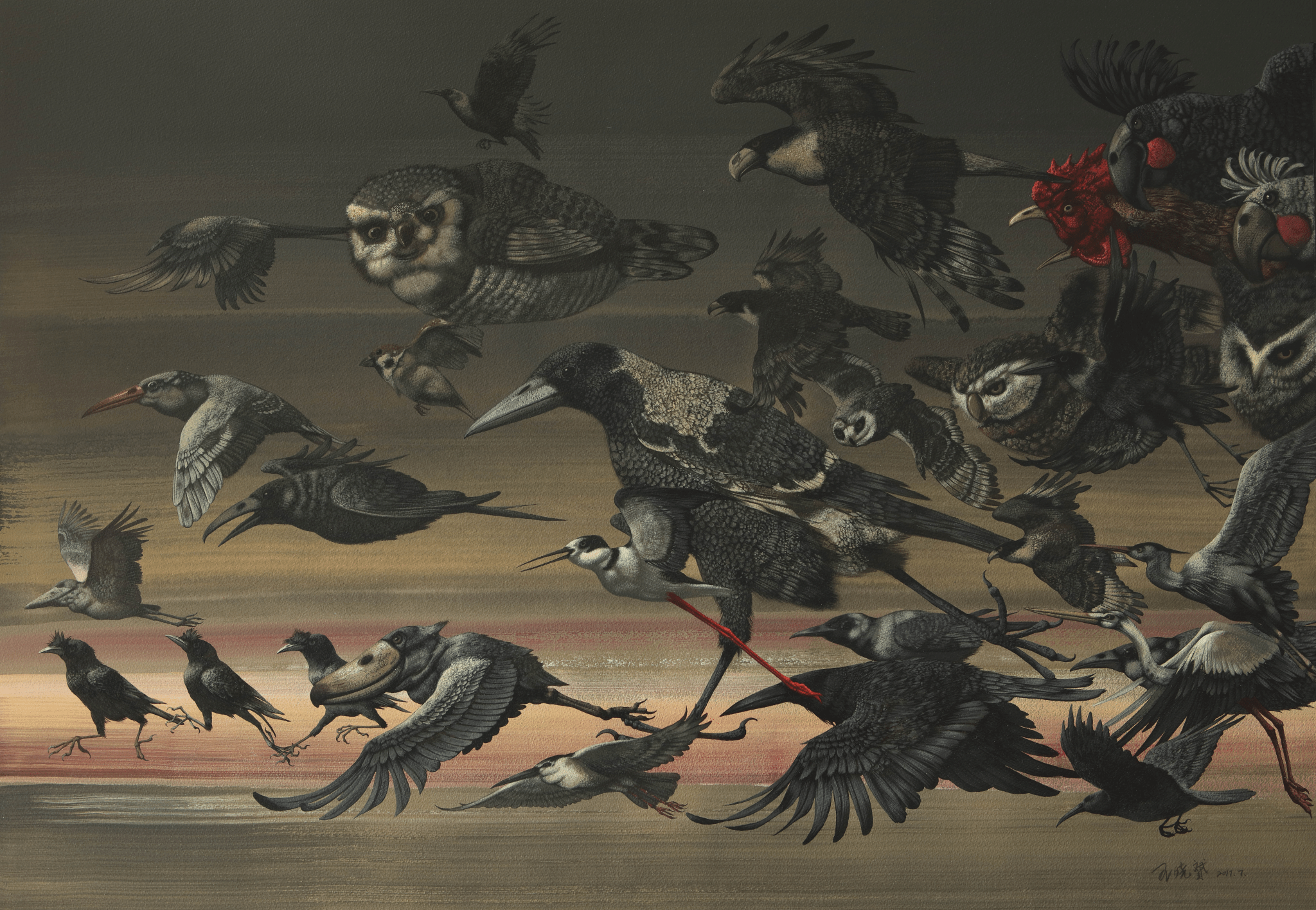 《飞行的姿态》 78cm×108cm 纸本水彩 王晓赟 2018年