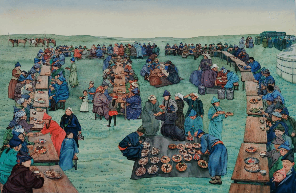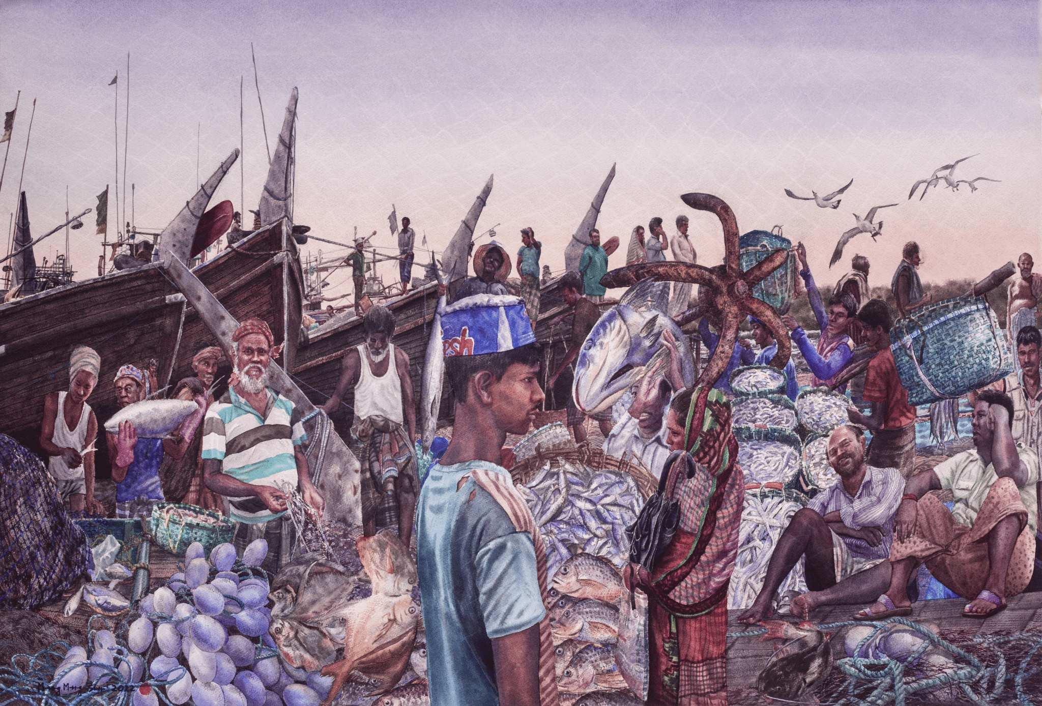 《渔歌》 88cm×110cm 纸本水彩 蒙蒙烁 2022年