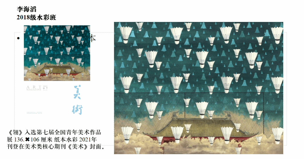 2018级水彩班李海涛同学作品入选第七届全国青年美展并刊登艺术类顶级核心期刊《美术》封面