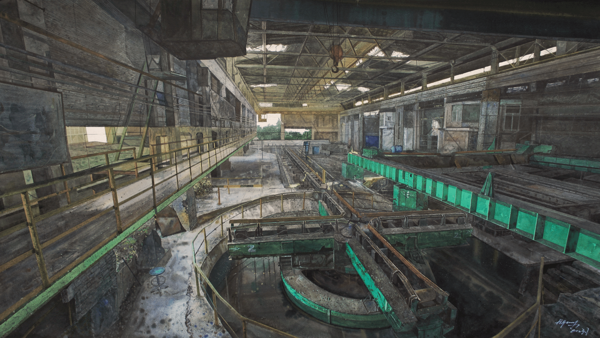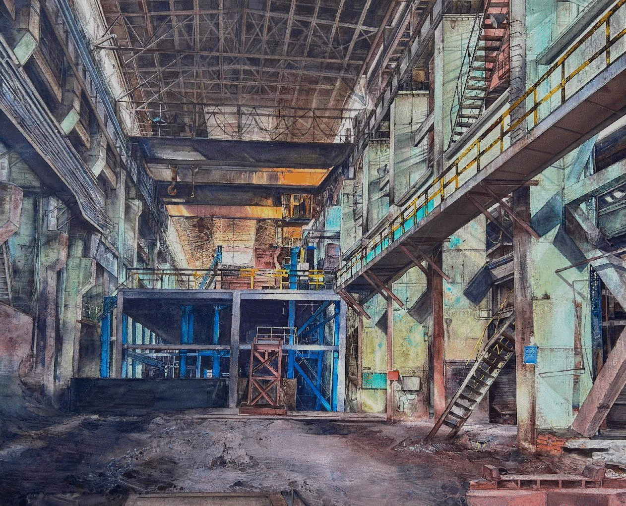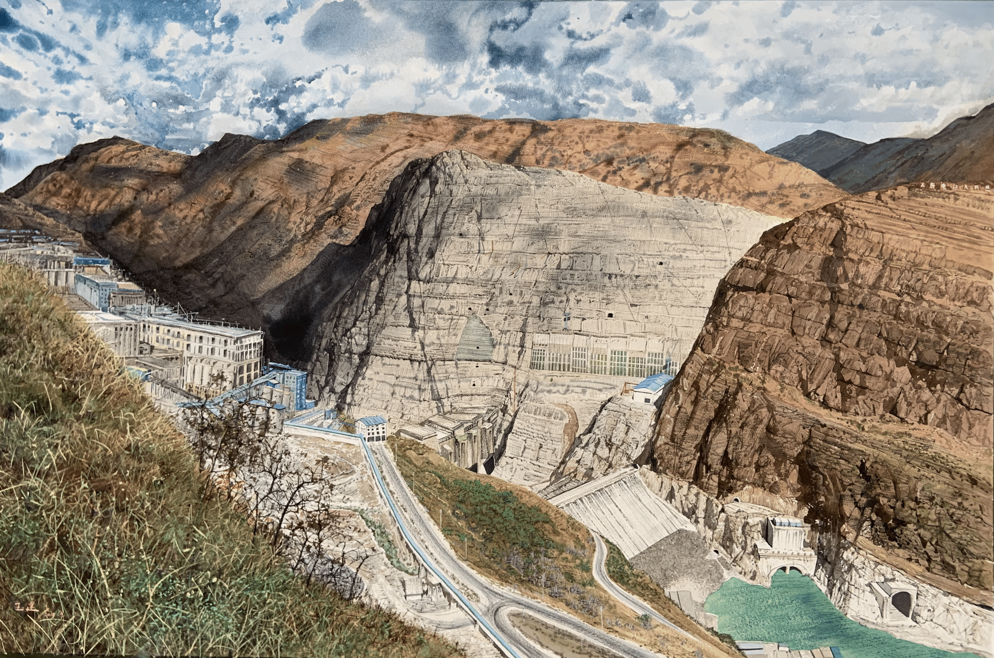 《国家力量—建设中的白鹤滩》 110cm×150CM 纸本水彩 王建
