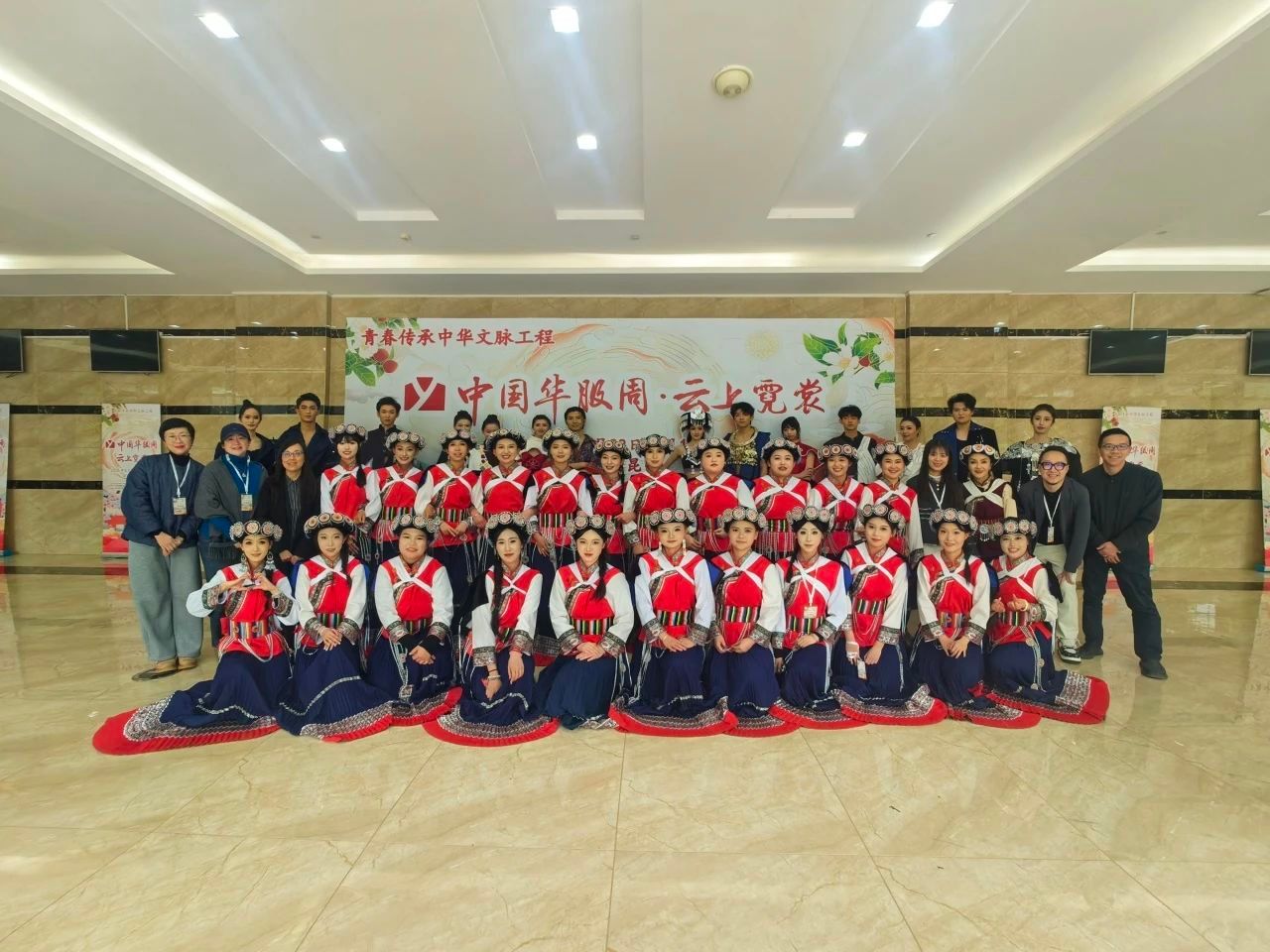 3月28日至4月1日,共青团中央2025年“中国华服周·云上霓裳”系列活动在云南昆明举办。活动设置华服韵典、华服巡演、非遗工坊、专题讲座、留学生体验活动等环节,吸引青年沉浸式感受中华优秀传统文化与现代科技创新融合之美,引领广大青年赓续中华文脉、增强文化自信、厚植家国情怀,为建设社会主义文化强国贡献力量。我校设计学院、戏剧学院、音乐学院师生团队参与4月1日的“华服韵典”节目演出。