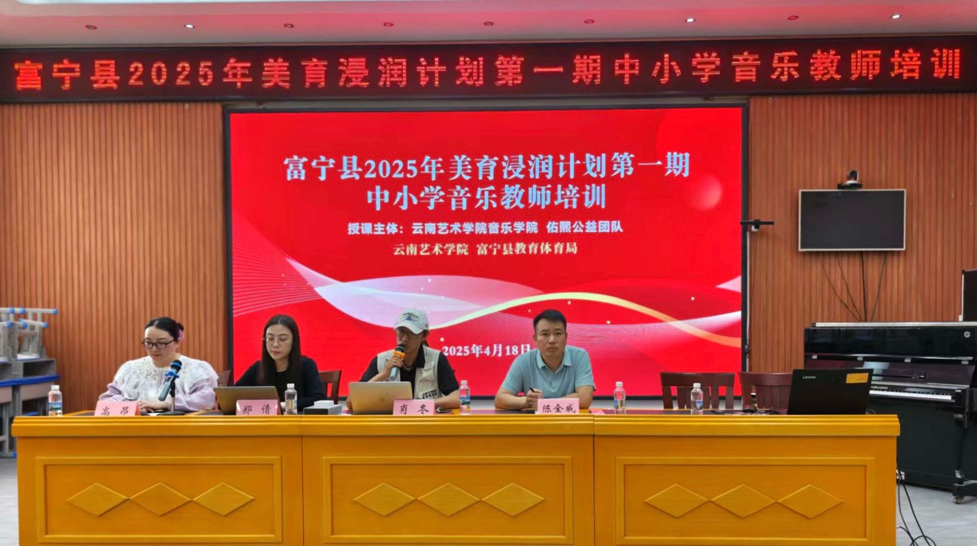 为贯彻落实立德树人根本任务,持续推动义务教育阶段美育质量提升,4月18日,beat365在线唯一官网登录“美育浸润行动”团队走进文山州富宁县,在富宁县第四小学举办2025年美育浸润计划第一期中小学音乐教师培训。