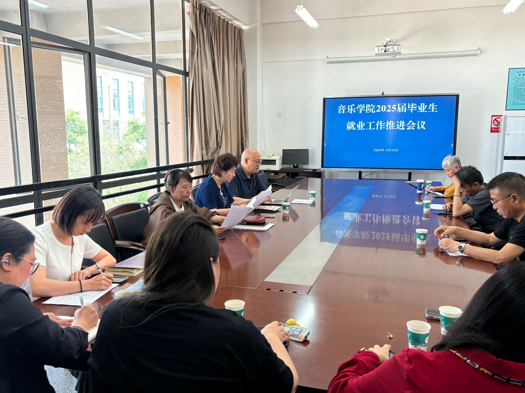 为全力促进音乐学院2025届毕业生高质量充分就业,2025年4月23日,音乐学院召开2025届毕业生就业工作推进会。音乐学院党委书记童汝全,党委副书记、院长林林,副院长侯静宜以及各教学系系主任、各科室负责人、毕业班辅导员参加会议。会议由童汝全书记主持。