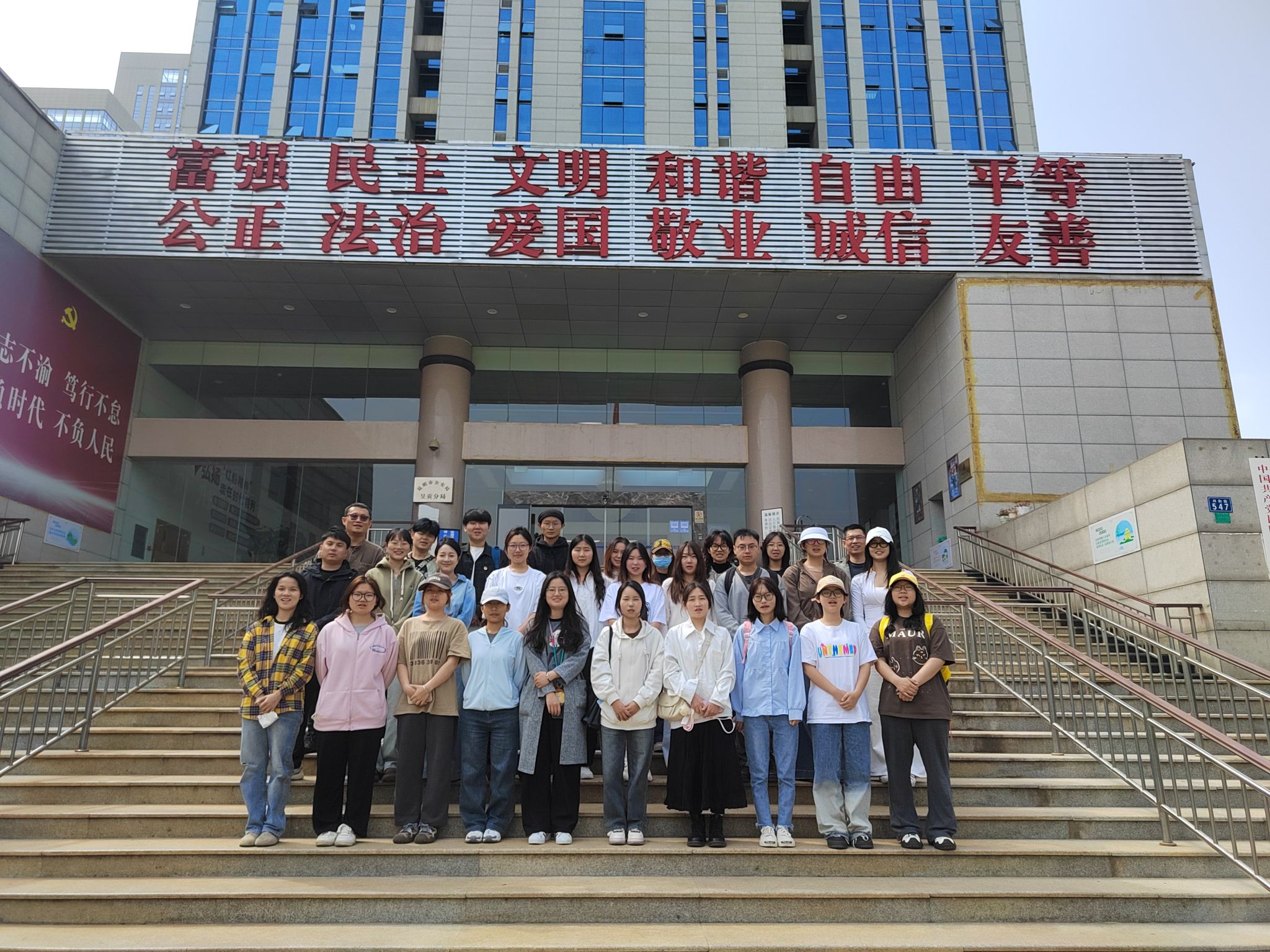 为进一步加强校园反诈宣传力度,切实增强设计学院师生防骗意识和识骗能力,2025年4月28日上午9点,雨花派出所民警梅涛、保卫处何斌老师、设计学院辅导员杨艾伦、任欢欢老师及设计学院学生代表前往昆明市公安局呈贡分局反诈中心参观学习。