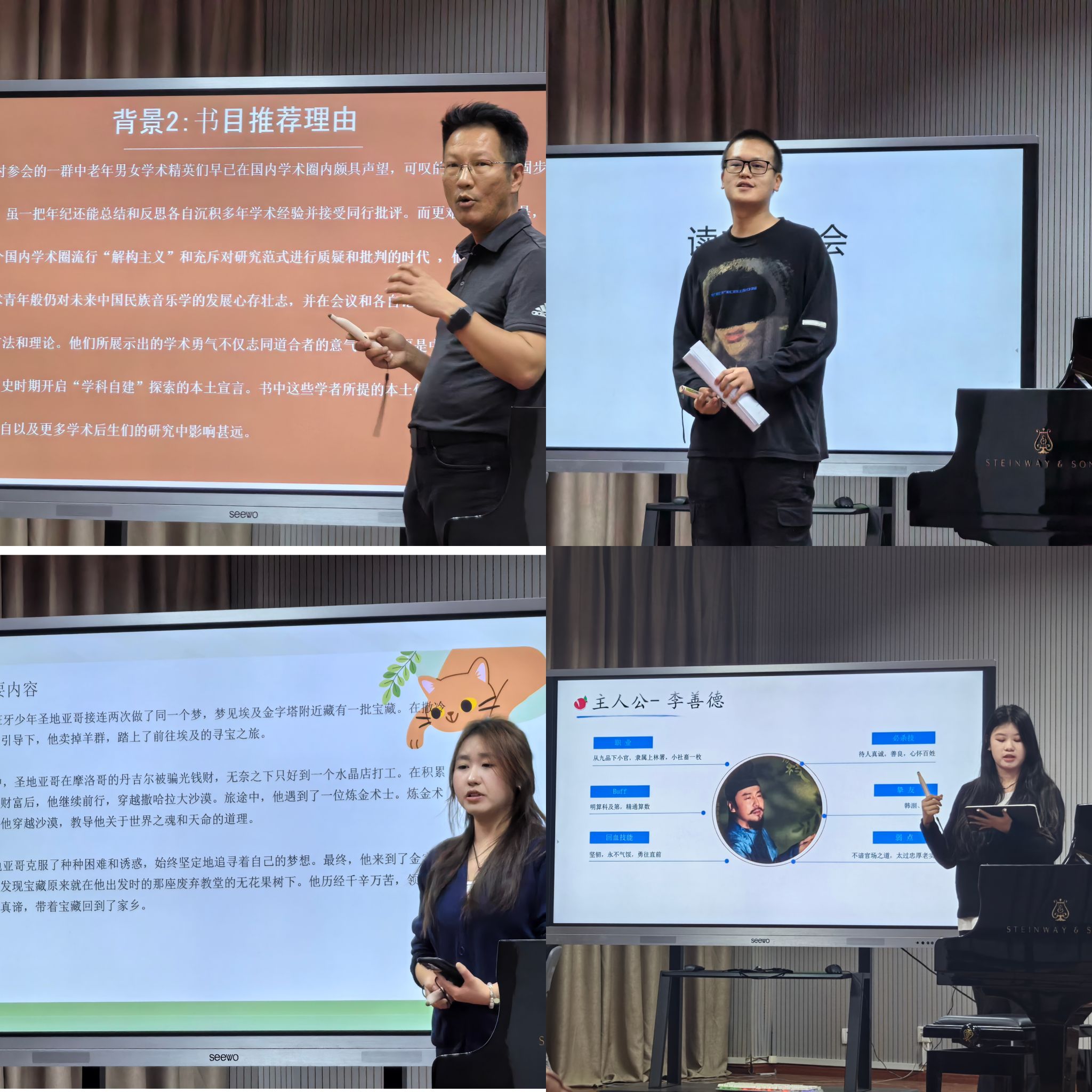 为深化全民阅读活动,营造书香校园文化氛围,beat365在线唯一官网登录音乐学系于2025年4月27日下午1:30在音乐学院B101室成功举办了以“书香浸润心灵 阅读点亮人生”为主题的读书分享会。