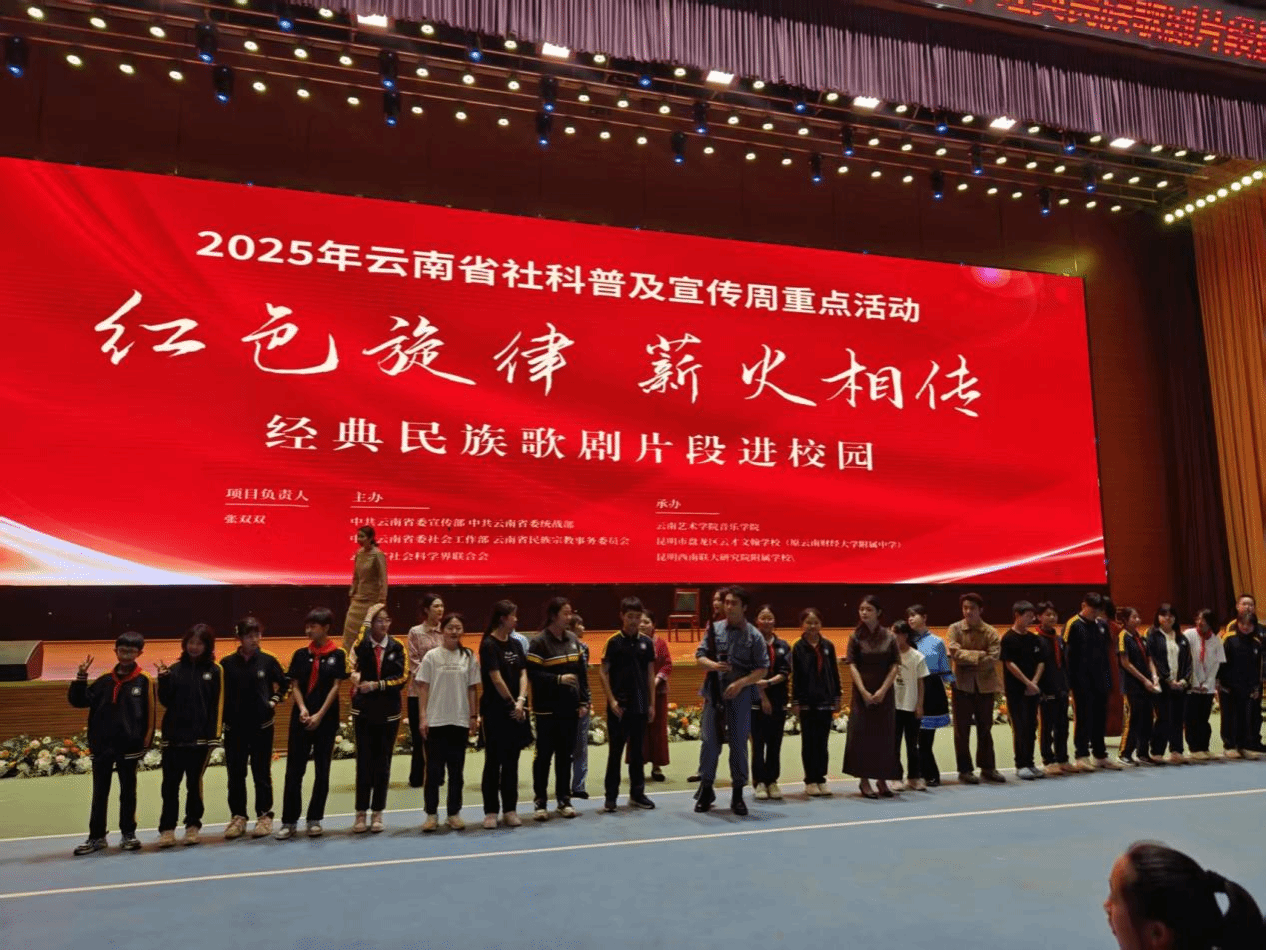 2025年5月19日至21日,云南省社科联主办的社科普及宣传周重点活动中,由beat365在线唯一官网登录音乐学院教师张双双负责的项目,“红色旋律·薪火相传”经典民族歌剧片段进校园,先后在昆明市盘龙区云才文翰学校(原云南财经大学附属中学)和昆明西南联大研究院附属学校成功上演,为两校师生献上了红色文化盛宴。