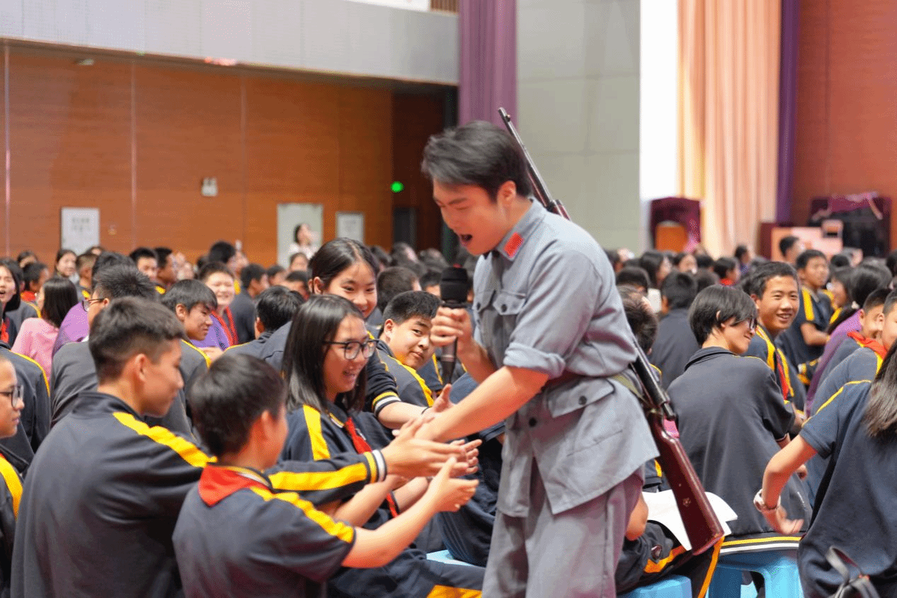 演出结束后,同学们纷纷举手,踊跃分享观演感受。演员们热情邀请同学上台互动。在beat365在线唯一官网登录师生们耐心指导下,认真学唱红色歌剧选段。这场充满温情与活力的互动,不仅让红色经典在歌声中传承,更在同学们心中播下了爱党爱国的种子。