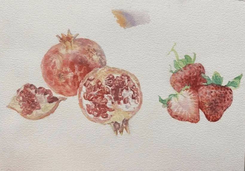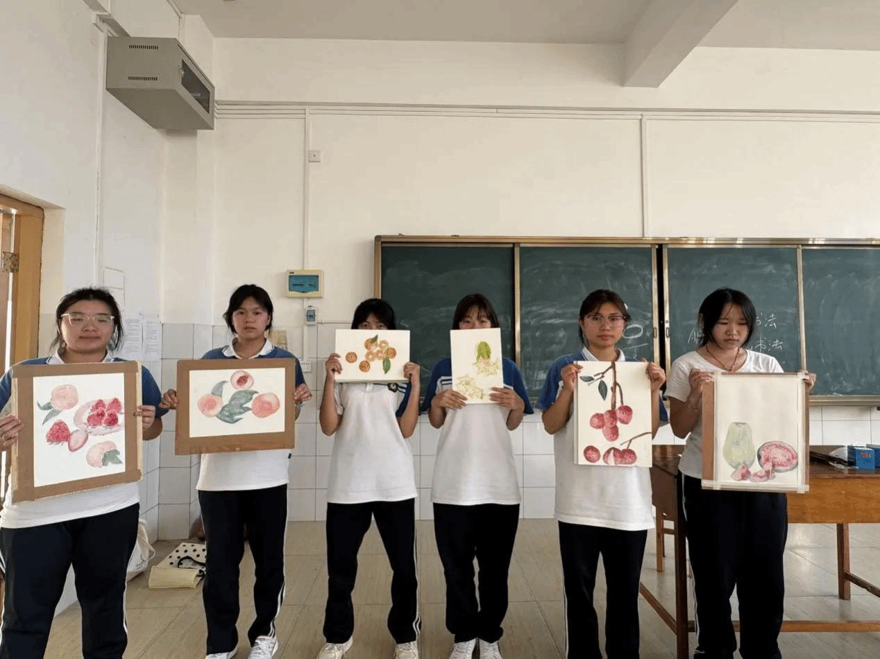 黄丽春结合富宁一中学生对水彩了解的实际情况,采用理论与实践相结合的教学方法,以通俗易懂的方式讲解水彩理论基础入门知识,让学生了解水彩画知识以及使用的工具。通过亲身示范教学,细致地指导学生掌握调色技巧以及水彩画技法的应用,让学生由浅入深地了解到水彩水果的质感与肌理的艺术表现,并耐心地引导学生们对水果进行创意构图、色彩表现。