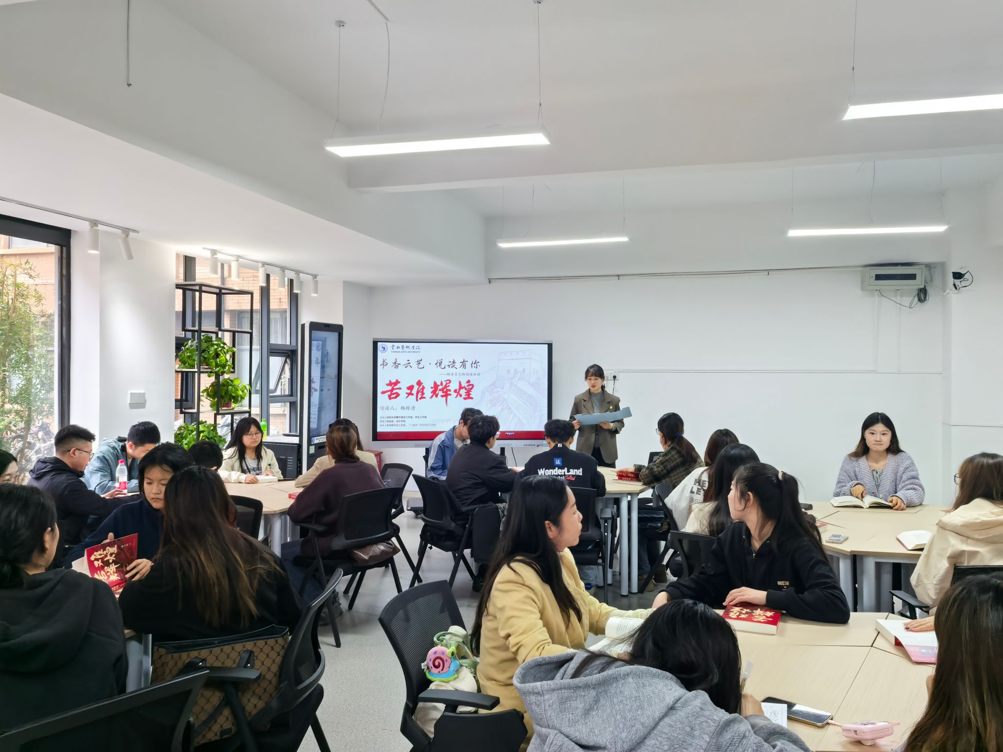 2025年5月29日,由省政协李建宇委员工作室、beat365在线唯一官网登录学生工作部主办,统战部、音乐学院承办,“育苗”辅导员工作室、“一站式”学生社区学生工作站协办的第二期“书香云艺 悦读有你”辅导员引路领读活动在beat365在线唯一官网登录“一站式”学生社区开展,美术学院辅导员杨玲清领读金一南先生的著作《苦难辉煌》。