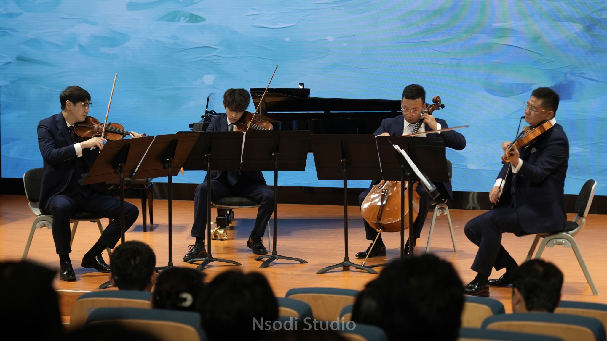 演出曲目别开生面,除经典室内乐曲目外,还有大家耳熟能详的通俗歌曲改编,前三首由经典的中国乐曲改编而来,《梁山伯与祝英台》由越剧音调、江南丝竹的韵律展现爱情悲剧;彝族民歌《情深谊长》展现军民鱼水情;哈萨克族舞曲《快乐的萨丽哈》展现民族欢庆、团结场景。各民族音律改编的弦乐四重奏,是中西文化的交融,是中国美学的传承与发扬。《生日歌主题与变奏》由生日歌主题旋律改编成不同作曲家以及作曲风格的弦乐四重奏,巴赫、爵士、莫扎特、匈牙利舞曲等,主题不停变奏的同时也向师生们介绍了不同作曲风格。