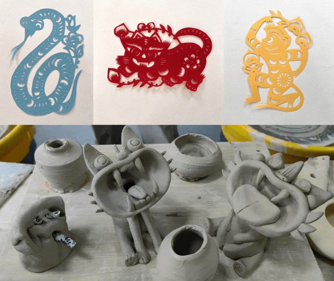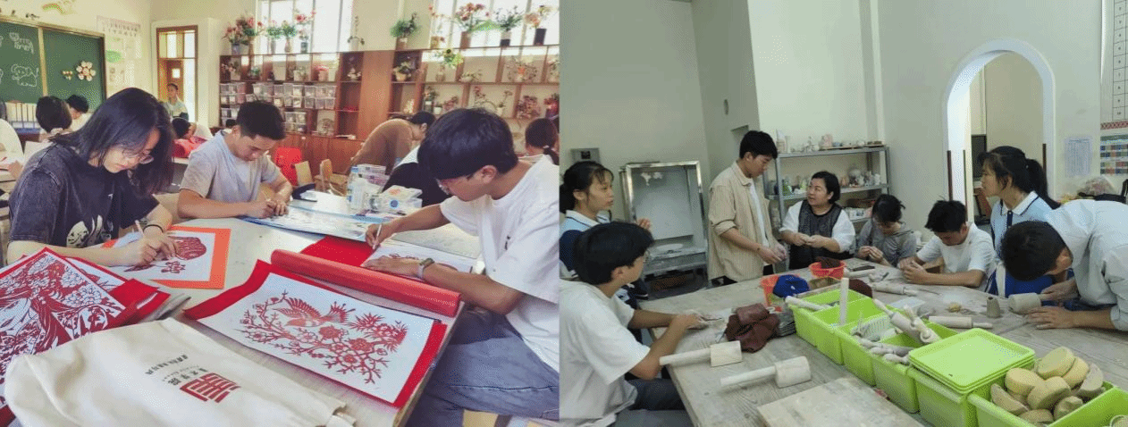 除了墙绘,支教团队与特教学校孩子们还开展了剪纸、陶艺活动。支教师生们耐心地指导,手把手地教学,用爱与耐心呵护着每一颗热爱艺术的心。每一张剪纸、每一件陶艺作品,都凝聚着大家的心血与祝福,都承载着孩子们对艺术的热爱和对美好生活的向往。