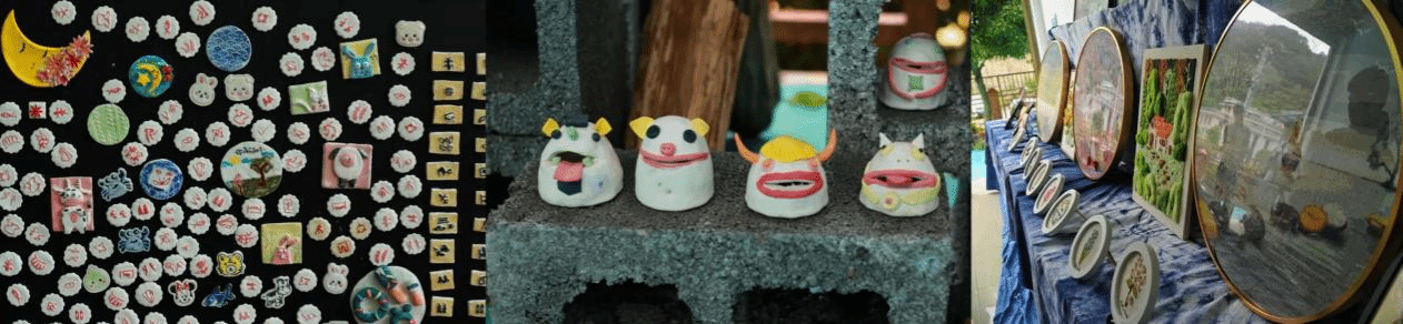 踏入特教学校作品展示区,扎染、刺绣、陶艺等作品精彩纷呈。蓝白扎染诉说故事,刺绣饱含憧憬,陶艺赋予泥土生机,每一件作品都彰显着孩子们对艺术的执着追求和克服身体障碍的坚韧不拔精神。