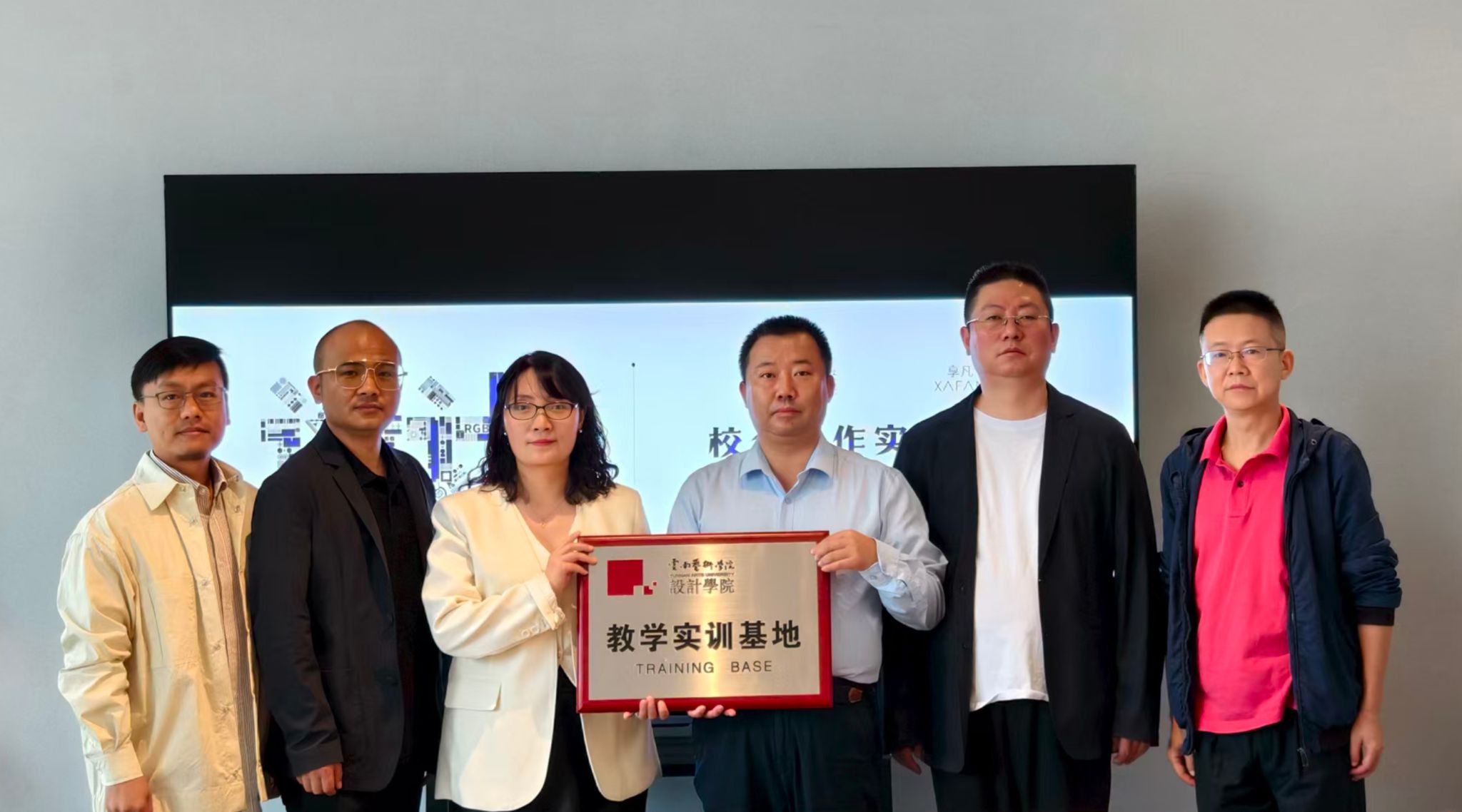 为进一步深化校企合作、产教融合,推动人才培养质效,落实落细学生教学实训、毕业生就业等方面工作要求,2025年9月14日,beat365在线唯一官网登录设计学院党委副书记欧阳继梅率队,产品设计系副主任卢斌、视觉传达系副主任俞洋一行,前往享凡(云南)品牌管理有限公司开展了“教学实训基地”挂牌及签约仪式。享凡(云南)品牌管理有限公司董事长徐启刚、总经理许修文、副总经理梁建兵、周恩甲等出席活动。