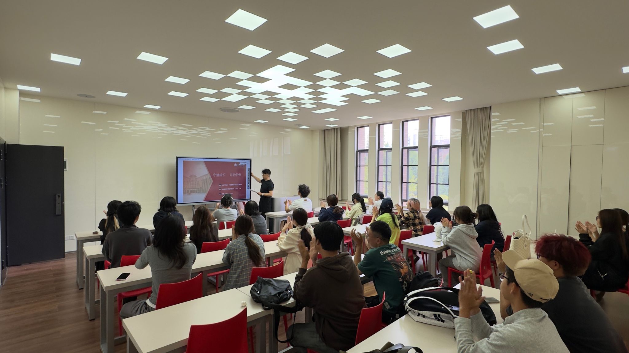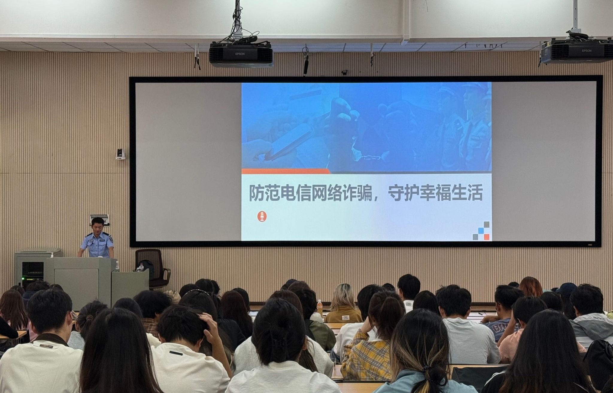 2025年9月24日,在公共教学楼视听教室组织开展国庆中秋节前安全教育培训暨九月份宿舍长工作会议,主讲人为雨花派出所反诈中心柴涵钰警官,全体辅导员老师和楼层长、宿舍长参加培训。柴涵钰警官结合近期高校内高发的真实案例,如“刷单返利”“冒充客服”“网络贷款”“虚假购物”等诈骗手段,进行剖析讲解,内容生动详实,案例触目惊心,向同学们重点强调“不轻信、不透露、不转账”的防骗“三不”原则,现场指导同学下载并学习使用“国家反诈中心”APP,关注官方预警信息,学习相关防诈知识。会议对全体参会人员进行了国庆中秋假期的安全提醒,要求离校同学务必锁好门窗、关闭电源,妥善保管个人贵重物品;假期期间外出要注意交通安全、人身与财产安全,自觉遵守交通法规,不乘坐无牌无证车辆;要求留校同学严格遵守宿舍管理规定,严禁使用违规电器,严禁留宿外人,做到按时归寝,注意用电、防火安全。