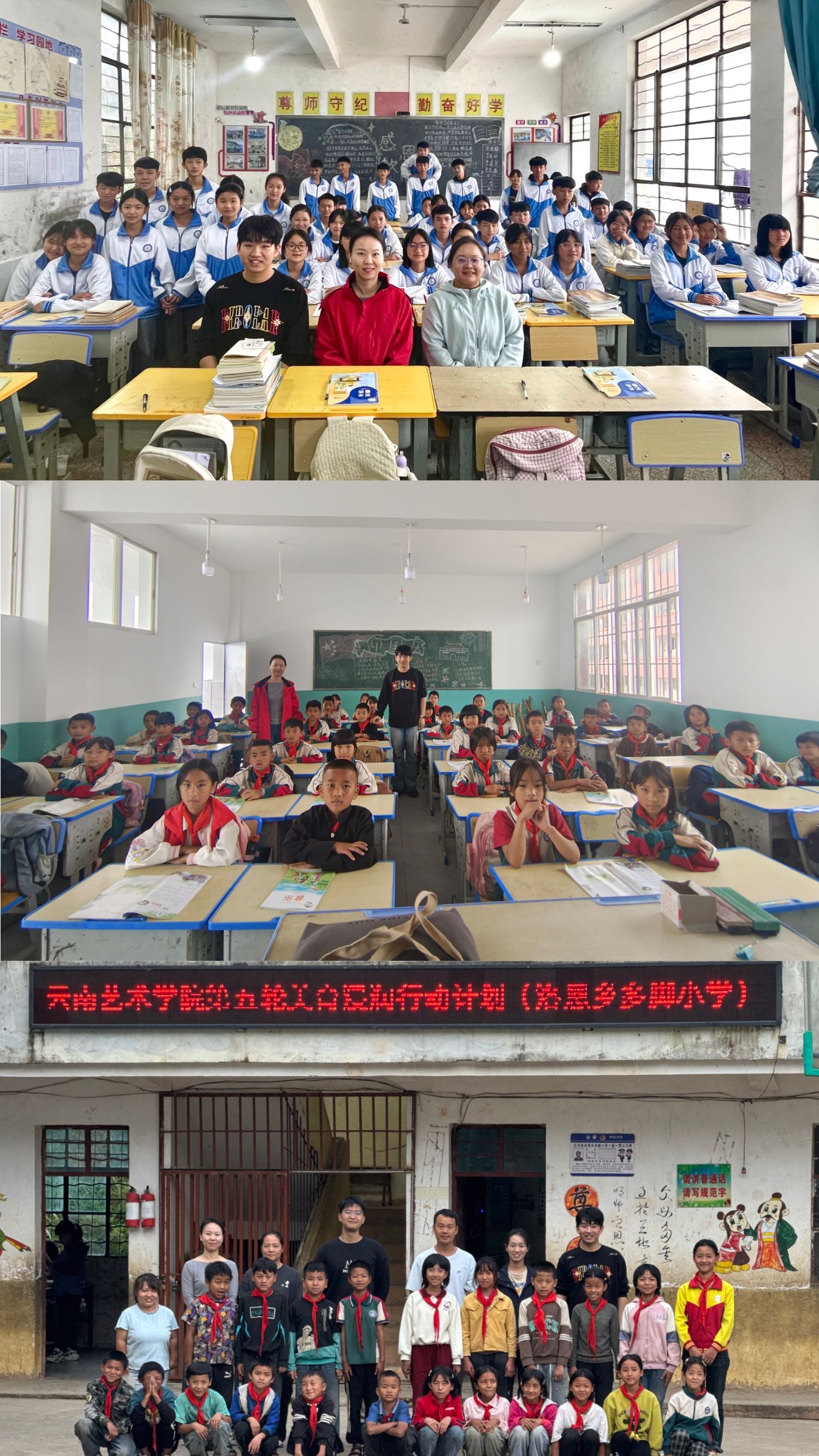 9月22日,音乐学院师生先后赴红河县宝华镇中心完小、乐育民族小学开展巡回授课,在两所学校均圆满完成教学任务。