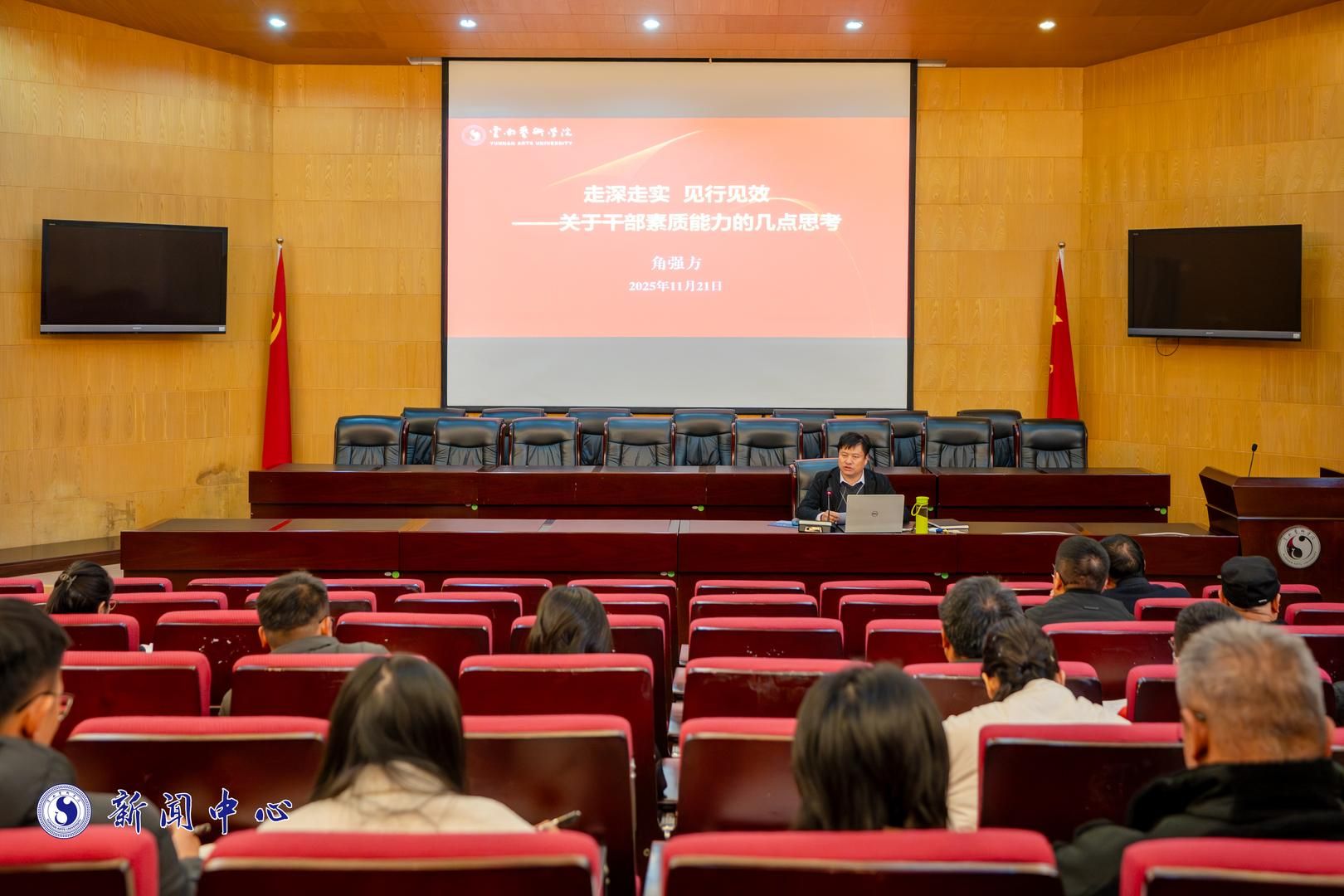 党委委员、办公室主任、组织部部长角强方以题为《走深走实 见行见效——关于干部素质能力的几点思考》作专题讲座。角强方结合学习宣传贯彻党的二十届四中全会精神和干部队伍现状,聚焦干部素质能力展开讲述,提出“走深走实,见行见效”既是要求也是目标。他指出,青年干部成长有四点关键,一是要注重提升党性修养,从政治、理论、文化、品德、作风、能力修养六个方面不断加强;二是要提升青年干部健康成长能力,从正确认识自我、勤于慎思独虑、善于省身克己、崇尚人格力量四个方面不断反思进步;三是要主动担当作为,从提高觉悟想干事、锤炼本领能干事、砥砺品行干成事、加强修养不出事四个方面增强干事创业本领;四是要走深走实见行见效,从政治过硬、能力过硬、作风过硬、组织过硬、纪律过硬五个方面推动《中共beat365在线唯一官网登录委员会关于加强党的建设的实施意见》在二级党组织落地见效。