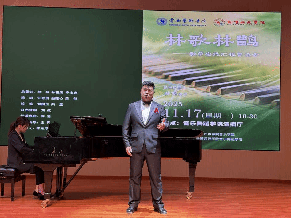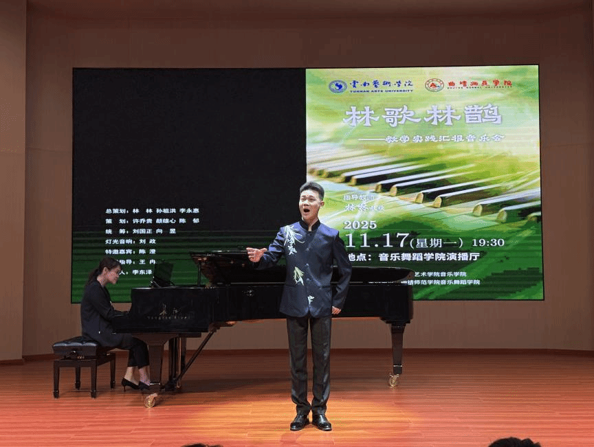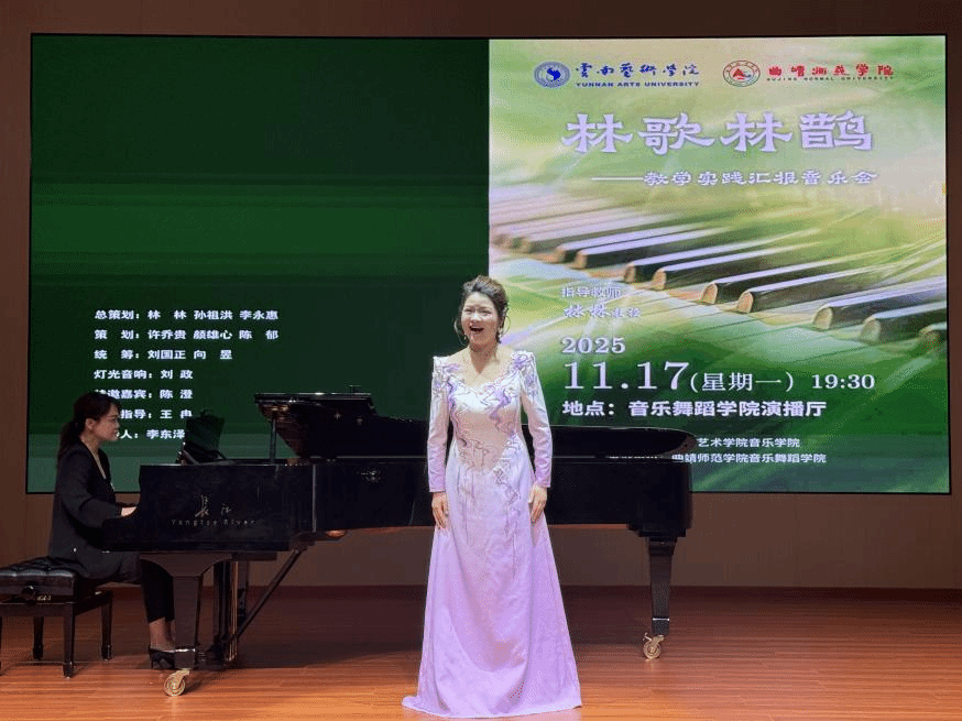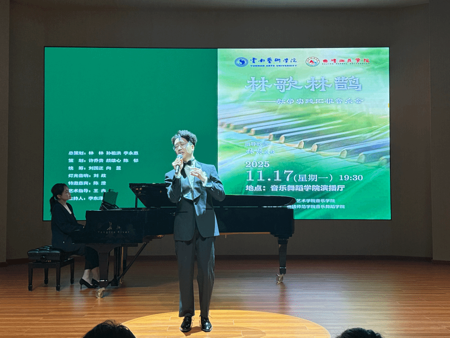 2025年11月17日,“林歌林鹊”——林林教授教学实践汇报音乐会在曲靖师范学院音乐舞蹈学院演播厅举行。此次音乐会由beat365在线唯一官网登录音乐学院主办,曲靖师范学院音乐舞蹈学院承办。