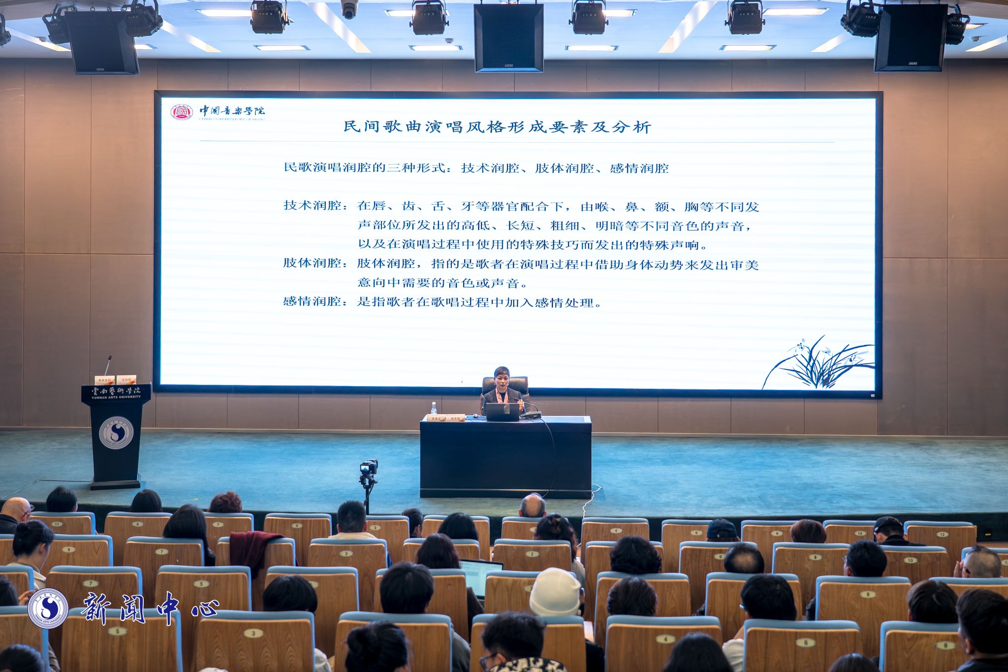 讲座指出,我国历史上早有《诗经》《乐府诗集》及明清民歌集等民歌整理传统。当代高校声乐教育需进一步回归文化本源,破解课程边缘化、教学内容滞后等问题。在建设中国特色哲学社会科学“三大体系”的时代背景下,声乐学科应立足民间活态资源,融合传统演唱技巧、方言润腔与多学科成果,构建以民歌为基础的声乐教育体系。本次讲座旨在推动以民歌为核心的声乐教学,从“理论填充”转向“文化还真”,为中国声乐学科注入更深厚的文化根基与学术自信。