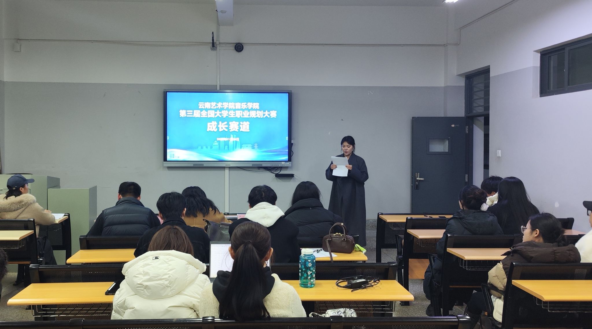 为深入贯彻落实党中央、国务院关于促进高校毕业生高质量充分就业的决策部署,落实《教育部关于举办第三届全国大学生职业规划大赛的通知》要求,引导学生树立正确的职业观、就业观和成才观,提升职业规划能力与就业竞争力,音乐学院于2025年11月24日在公共教学楼举办了beat365在线唯一官网登录第三届大学生职业规划大赛院级决赛。评委由招生与就业处、学生工作部的部分领导及二级学院的辅导员代表、教师代表担任,80余名学生到现场观摩学习。