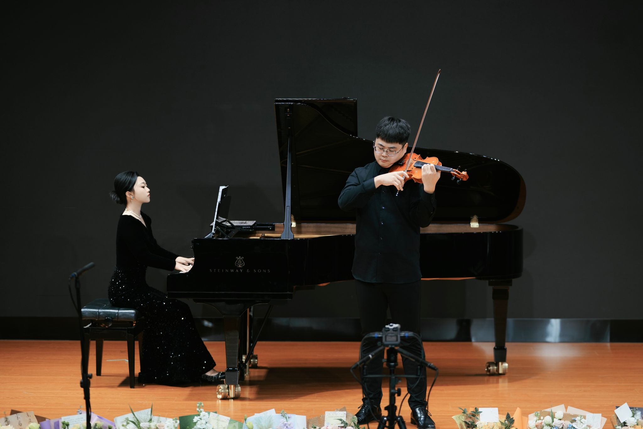 乐声悠扬传师道,弦舞和鸣映初心。11月13日晚,由管弦系教师涂宇宏与音教系教师姚诗婧联袂演绎的“弦上舞韵”——小提琴与钢琴教师专场音乐会在音乐学院B403音乐厅温情上演。本场音乐会以艺术实践响应学校号召,将教学理论与艺术实践深度融合,为现场学生、观众带来了一场兼具专业水准与情感温度的视听盛宴。