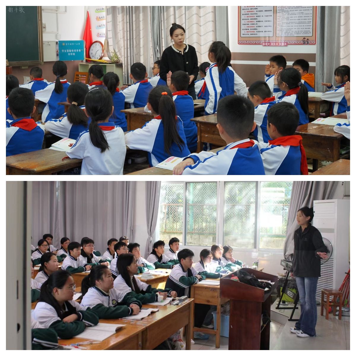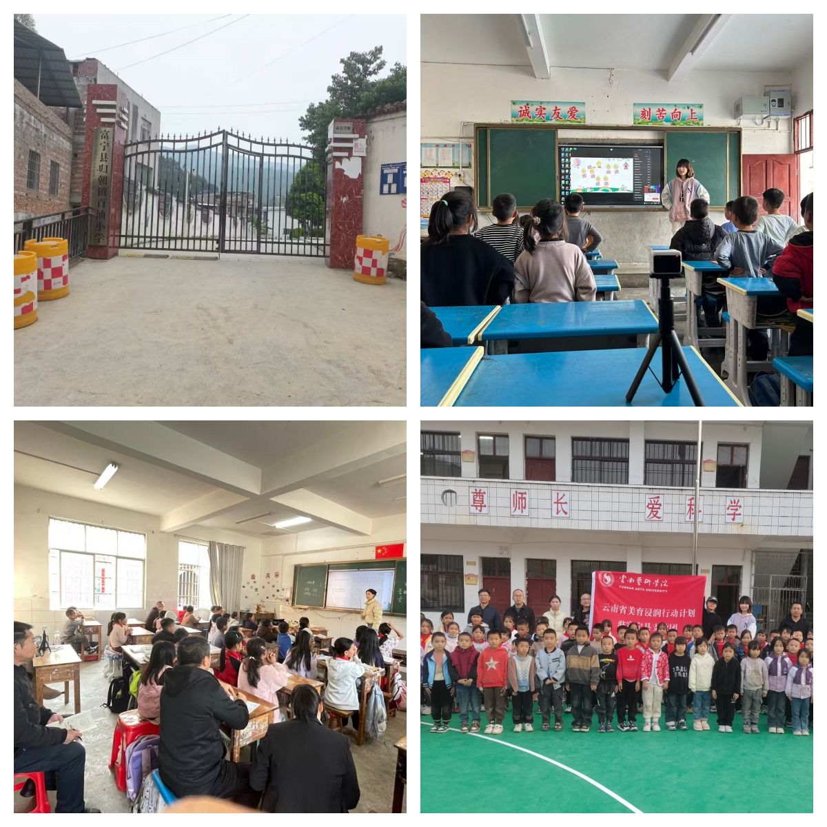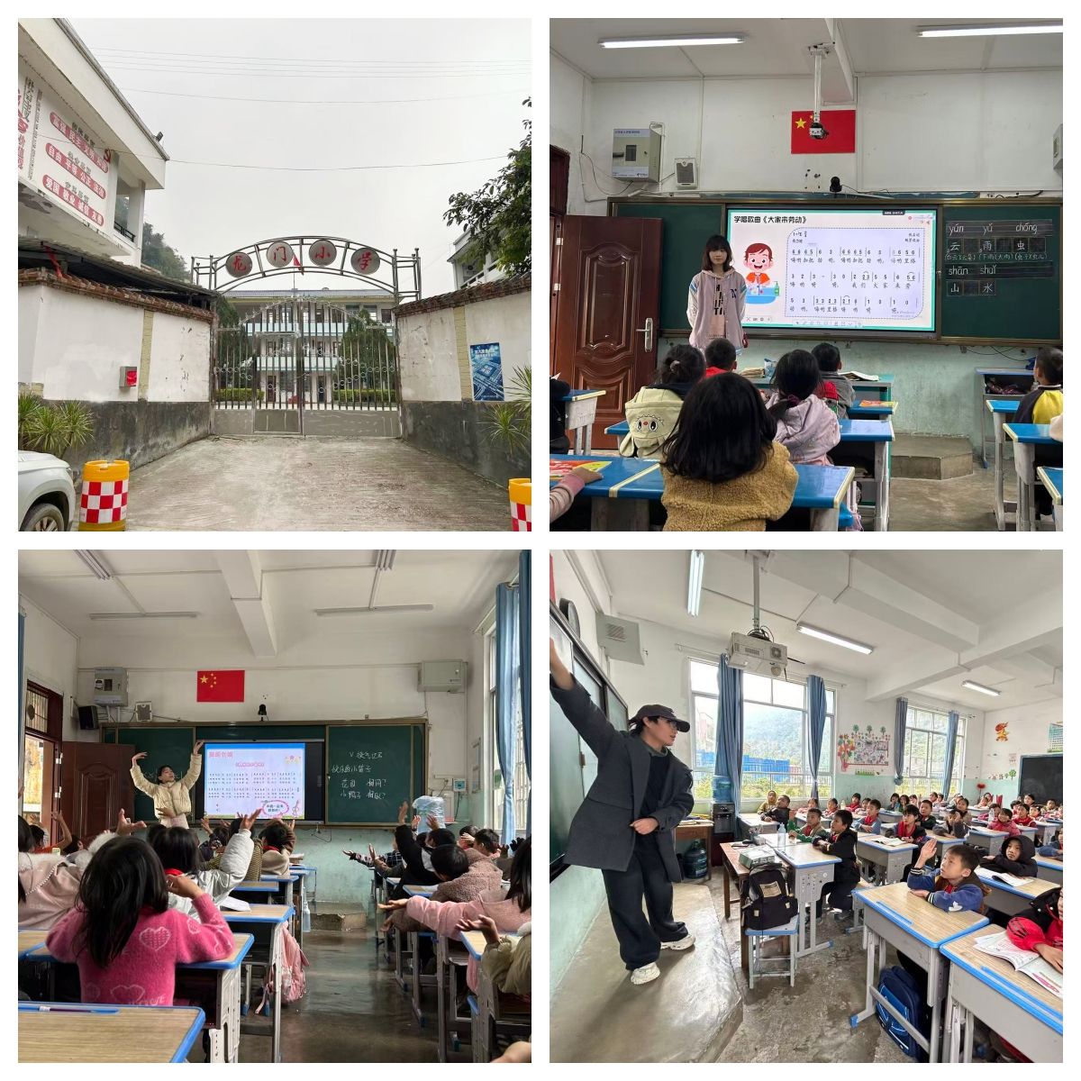 12月初,音乐学院团队赴富宁县归朝镇龙门小学、百油小学再次开展巡课送教,团队成员沈于童为一年级同学们带来了“大家来劳动”的歌曲课堂,讲述了幸福来源于劳动的人生道理,课堂条理清晰、脉络分明,同时声情并茂、充满童趣;李垚垚为二年级同学带来了“快乐的小笛子”,结合歌曲引入了乐器认知,基础乐理,体态律动手势舞等内容,课堂中讲、唱、动的有机结合也吸引在场听课老师们纷纷拍照记录;陈舞为四年级同学们带来了“幸福拍手歌”,他带领学生们回归音乐基础,课堂循序渐进张弛有度,引入的盲盒奖励机制,充分提升了学生的课堂参与度与配合积极性。巡课送教活动深入乡镇一线,回应了当地同学对美育课程的深切渴望,助力同学们更好地理解和热爱音乐艺术,团队成员也在工作中切身感受了基层的真善美,实现了双向浸润。