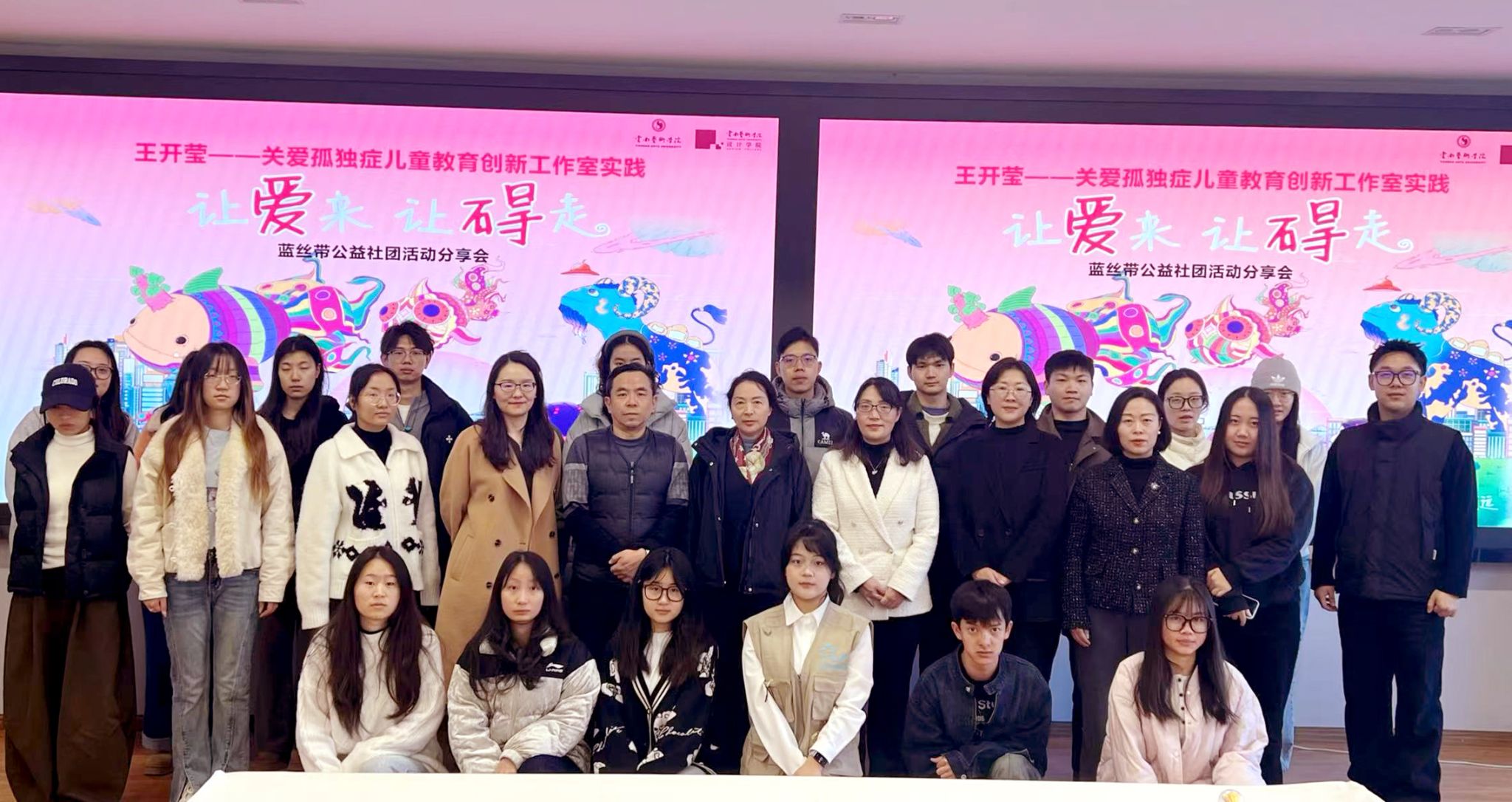 2025年12月16日,“王开莹——关爱孤独症儿童教育职工创新工作室”暨蓝丝带公益社团主题分享活动在设计学院开展。学校工会常务副主席王进,设计学院院长万凡,设计学院党委副书记、纪委书记欧阳继梅,设计学院党委委员、办公室主任、分工会主席成清琴,设计学院专业教师王开莹出席活动。活动由设计学院党委委员、团委书记王瑛主持。